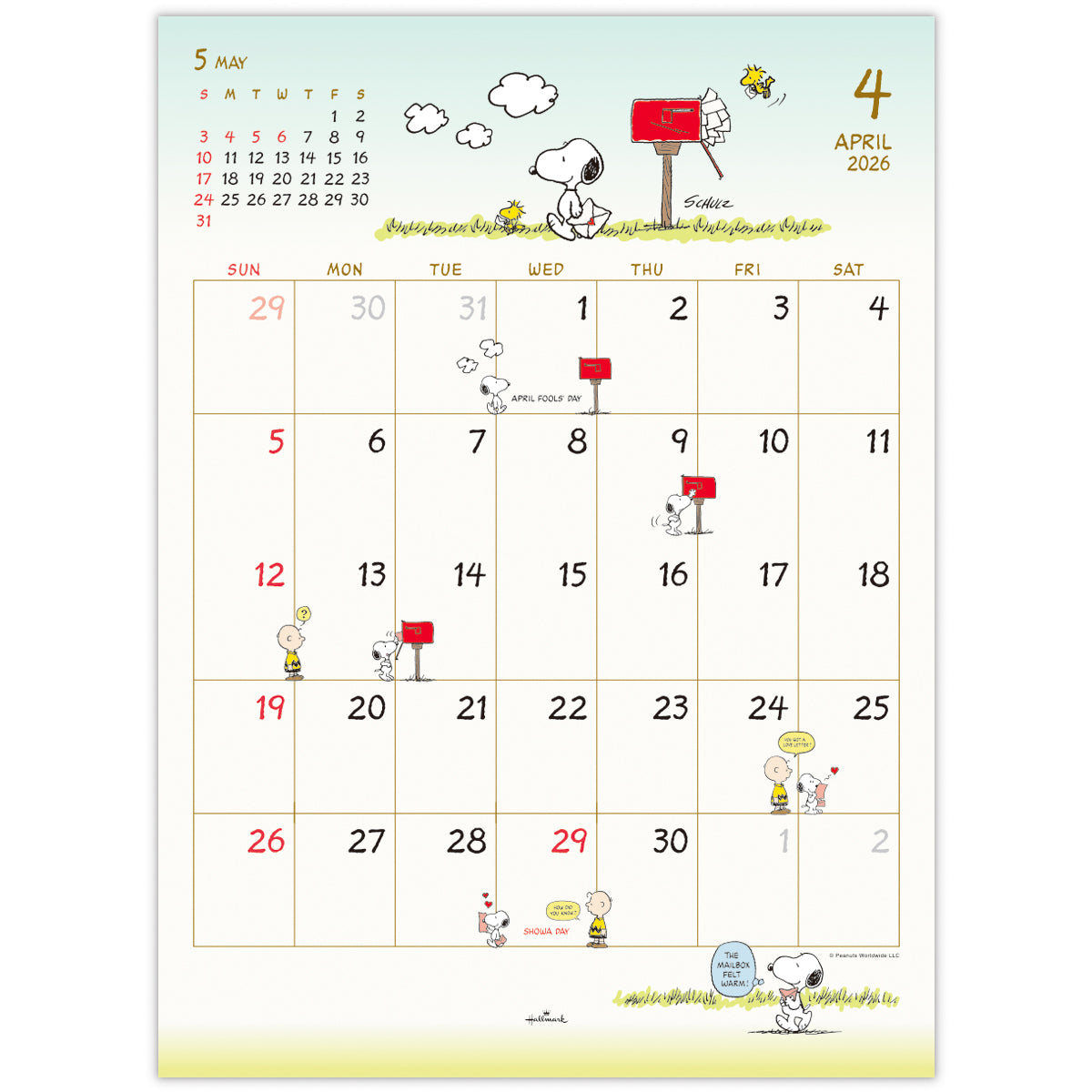 スヌーピー ピーナッツ【壁掛け|二つ折りカレンダー大 2026】