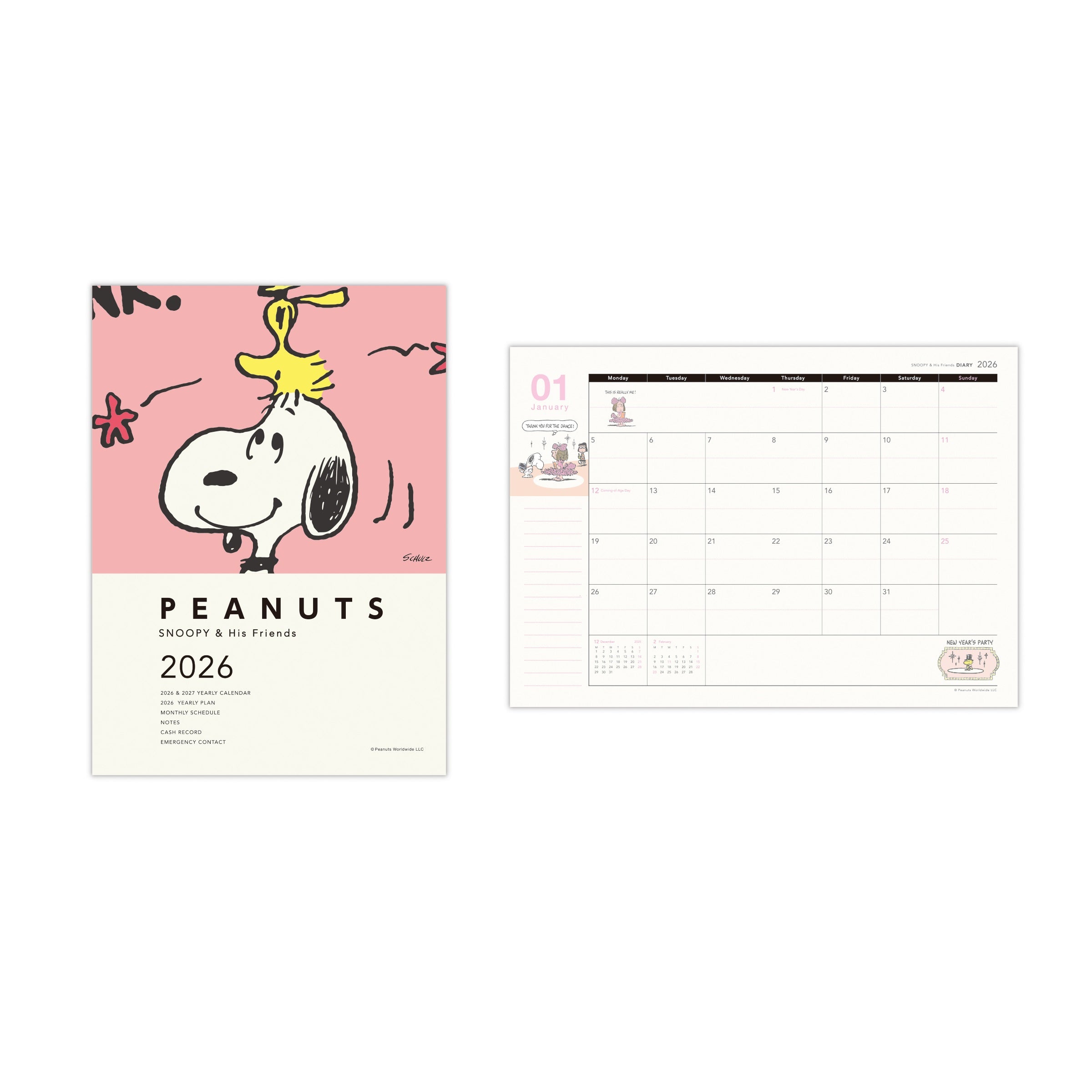 スヌーピー コーラルピンクスマイル【手帳|A5マンスリーダイアリー 2026】