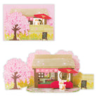 春の情景をカードに閉じ込めた風景型の立体カード。大きな桜や野点傘、テーブルの上の白玉あんみつなど細かいモチーフまでこだわって描きました。立てて飾れるので春のインテリアとしても楽しめます。