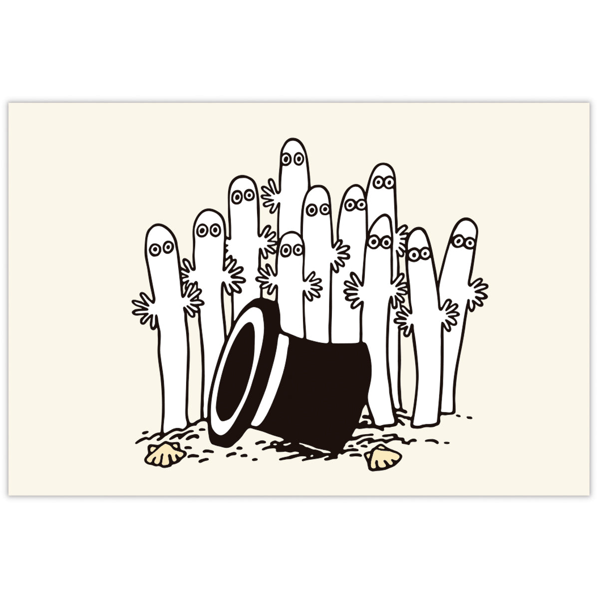 ファン待望のムーミンのポストカードが登場! ムーミンファンに人気のアートをたくさん盛り込んだ特別なデザインです。つややかなUV加工入り。