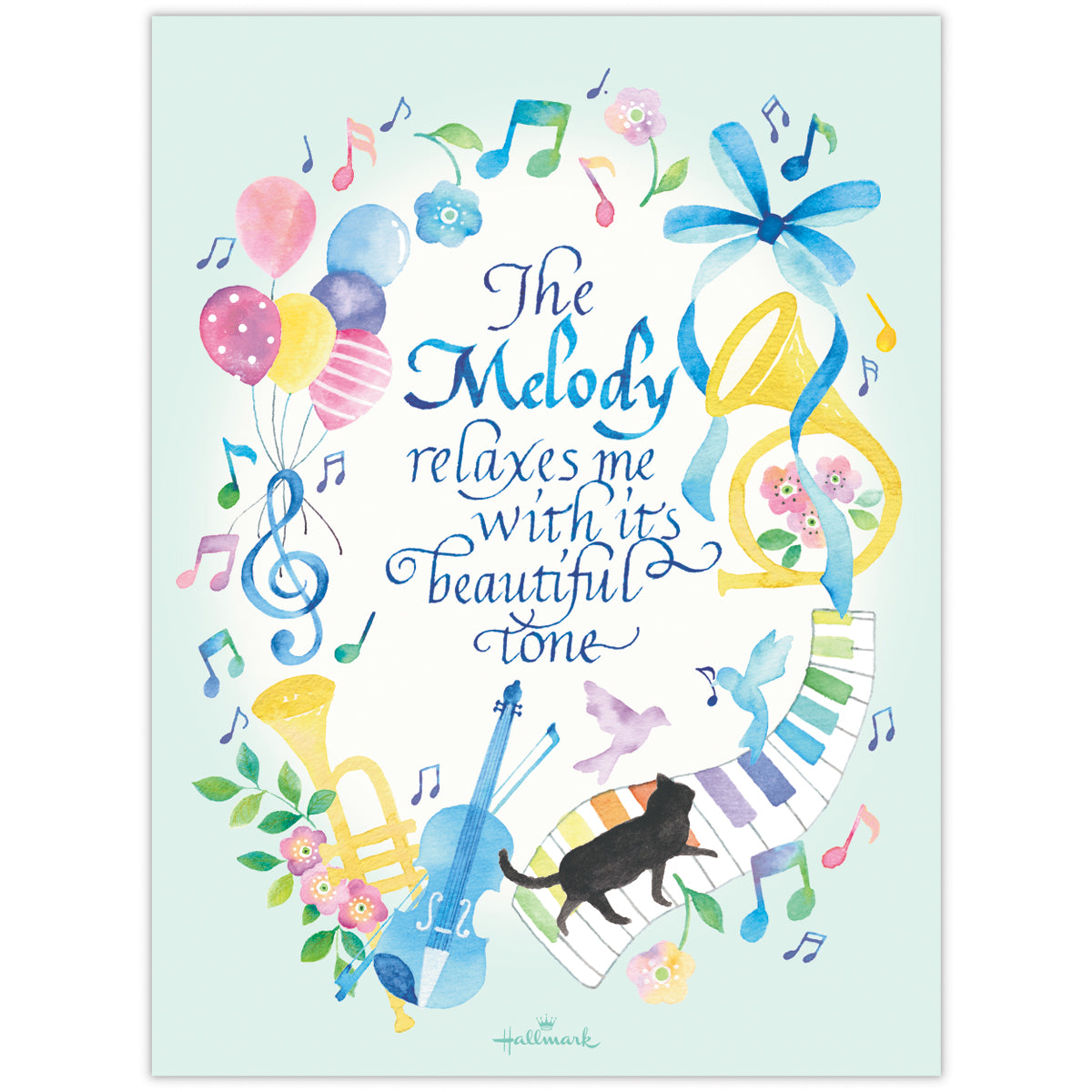 水彩作家・なかにしいずみによる繊細な水彩画とハンドレタリングが見どころのデザイン。美しく心地よいメロディーが聞こえてきそうな世界観を、爽やかな色合いで描きました。ツヤ感のあるUV加工が施されています。