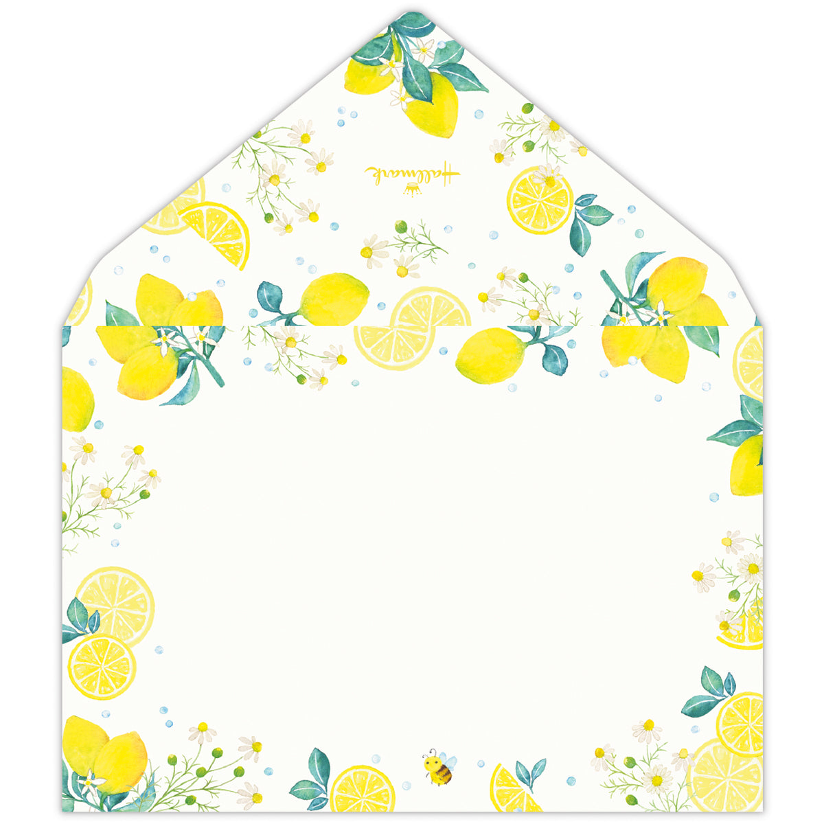 春から初夏にかけてのコミュニケーションに、花咲くような彩りを。美しいにじみの水彩で描かれた草花と果実が爽やかな心躍る「Merrily(メリリー)」コレクション。色彩心理学に基づいてプラスのイメージや効果を持つ色をチョイスしました。便箋に華やかな金箔加工が入ったレターセットです。