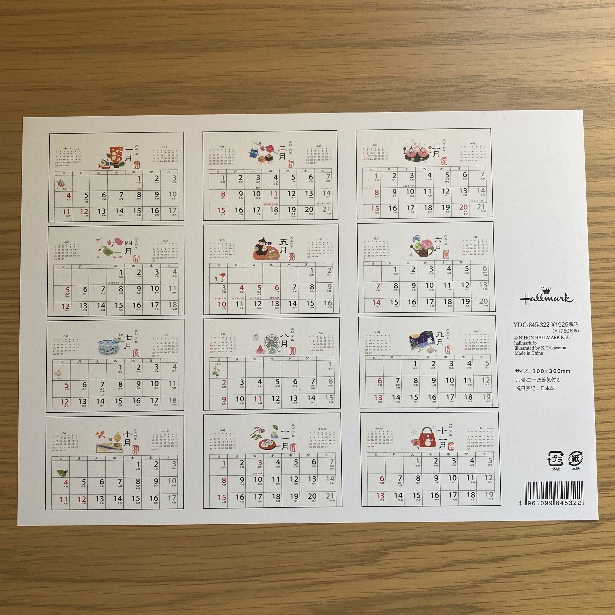 ●本文・台紙サイズ:300×300mm●表紙1枚 本文12枚 台紙付き●ツインリング綴じ●12ヶ月絵柄情報シート 1枚●祝日表記:日本語/六曜・二十四節気付き