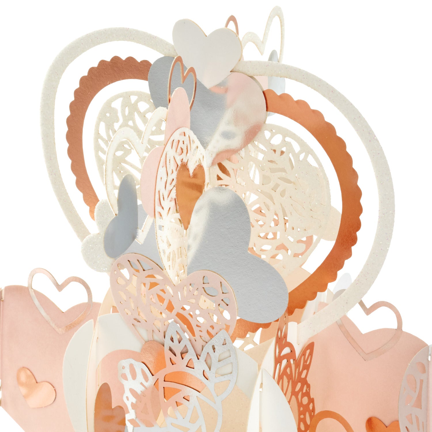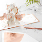 カードを開くと、「あなたはとっても愛されているよ、おぼえておいてね」のメッセージとともに、きらびやかなハートが立体的に飛び出す3Dポップアップカード。受け取った方は、きっと明日の活力になることでしょう。英語だからストレートな表現も、スタイリッシュに伝えられます。