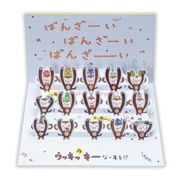 ・15匹のサルが一斉にばんざいする立体が圧巻のカードです