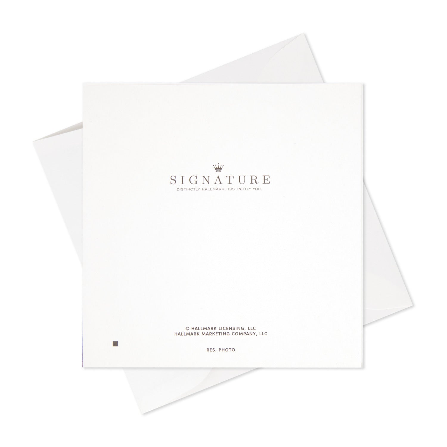 あなたたちのような永遠の愛ほど美しいものはありません─向かい合う二羽の白鳥がロマンチックな記念日お祝いカードです。ご両親やお世話になった方へのお祝いに贈りたい、ワンランク上のプレミアムライン「Signature」の世界をお楽しみください。