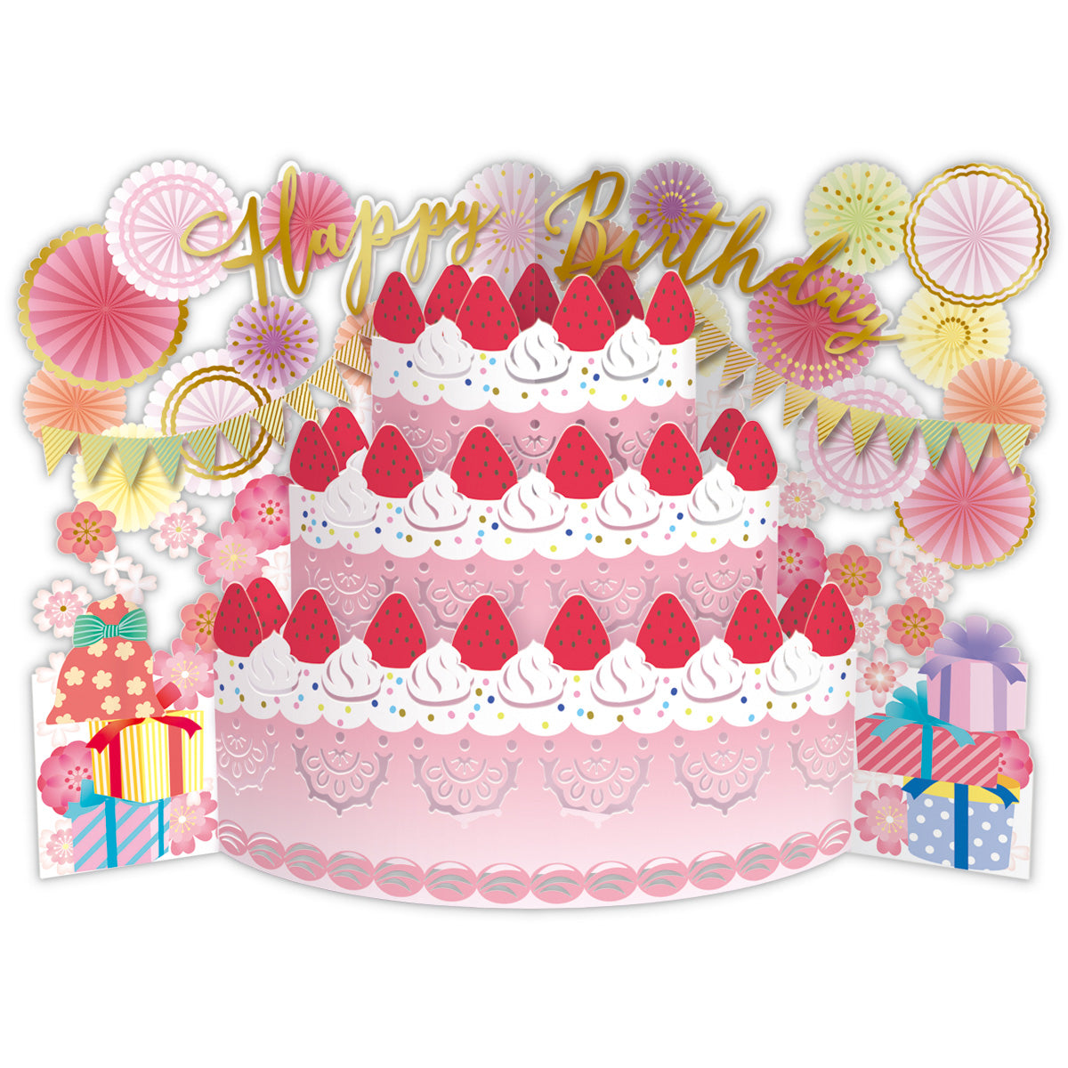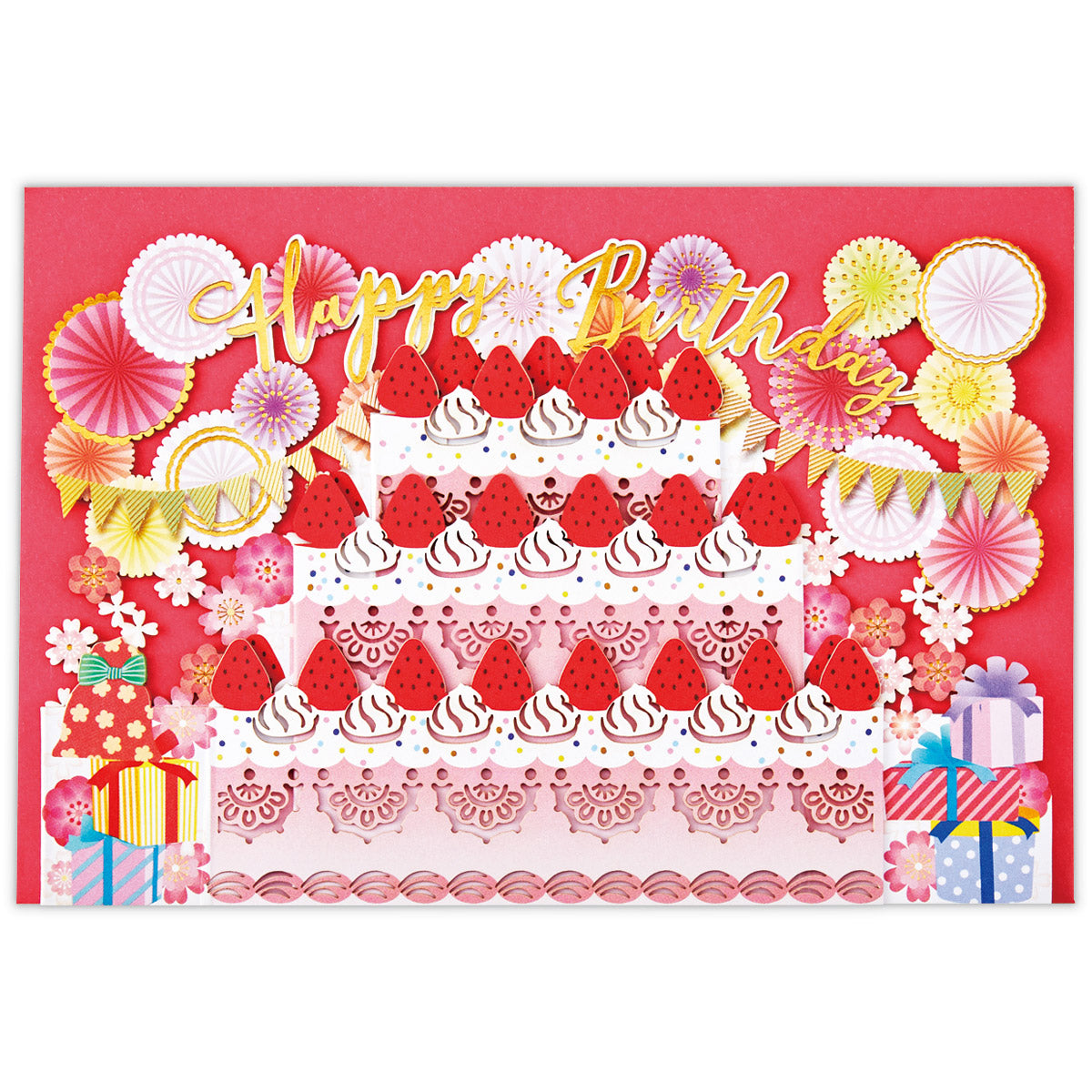 カーブストロベリーケーキ【誕生お祝い/立体カード】