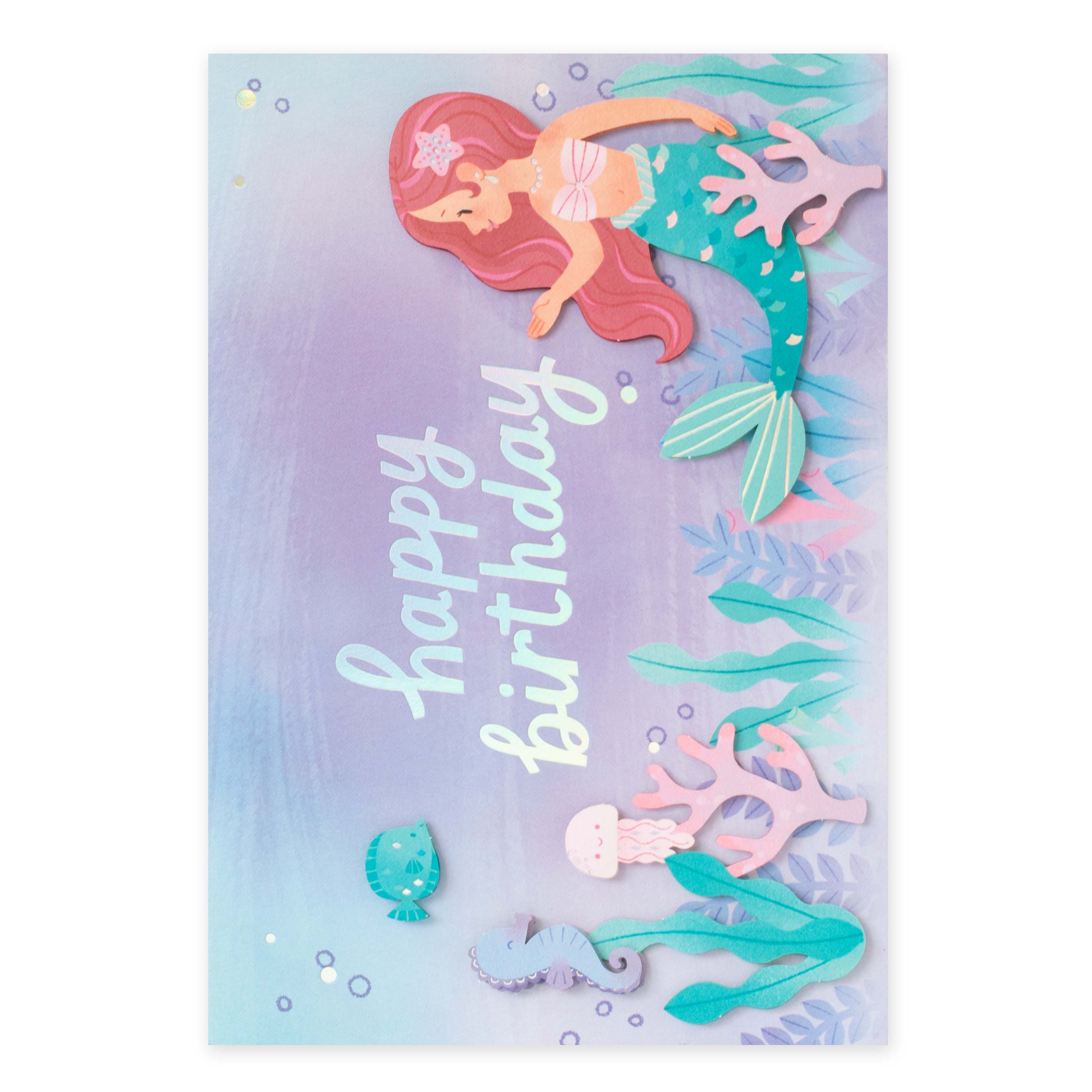 ステキなあなたへ…お誕生日おめでとう。マーメイドとオーロラ箔がかわいいバースデーカードです。