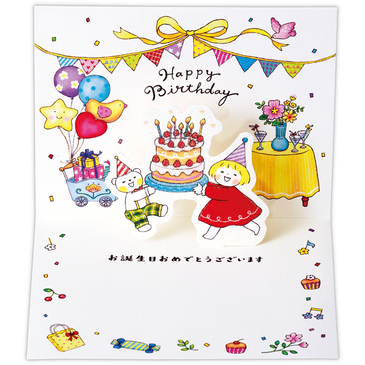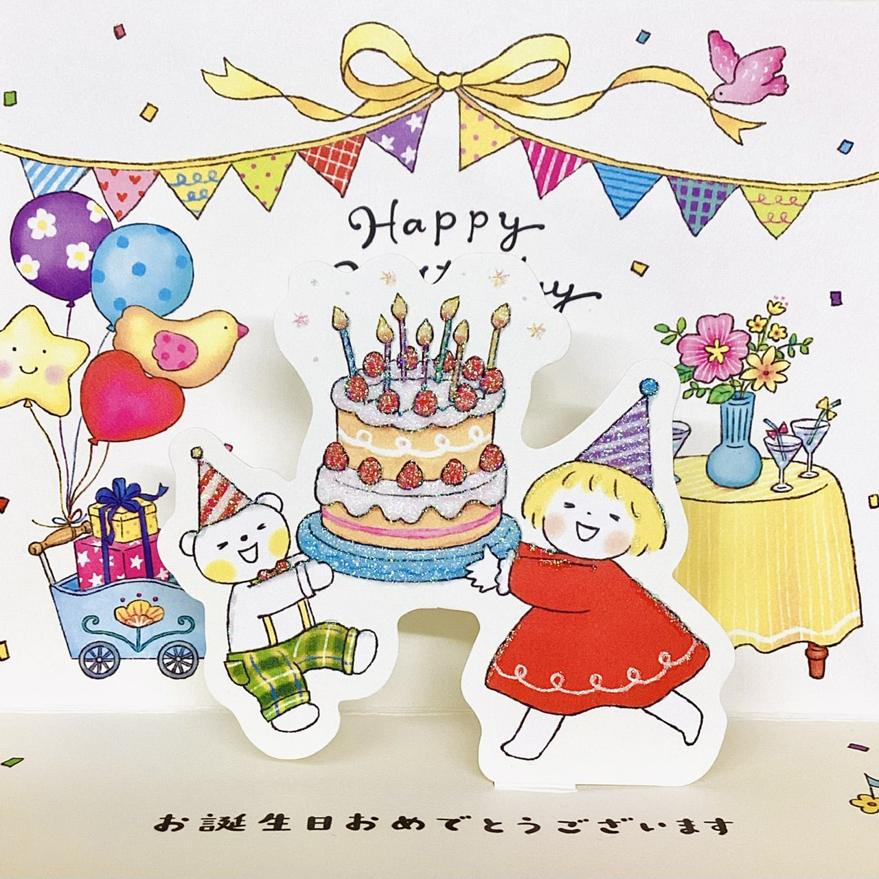 ケーキでお祝い はるちゃんとふうくん【誕生お祝い/立体カード/仲良しともだち】