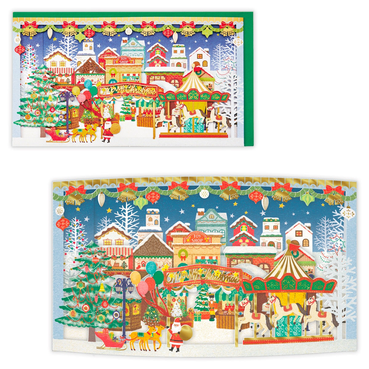 立てて飾れる ワイドレーザーカット クリスマスタウン【立体クリスマスカード】