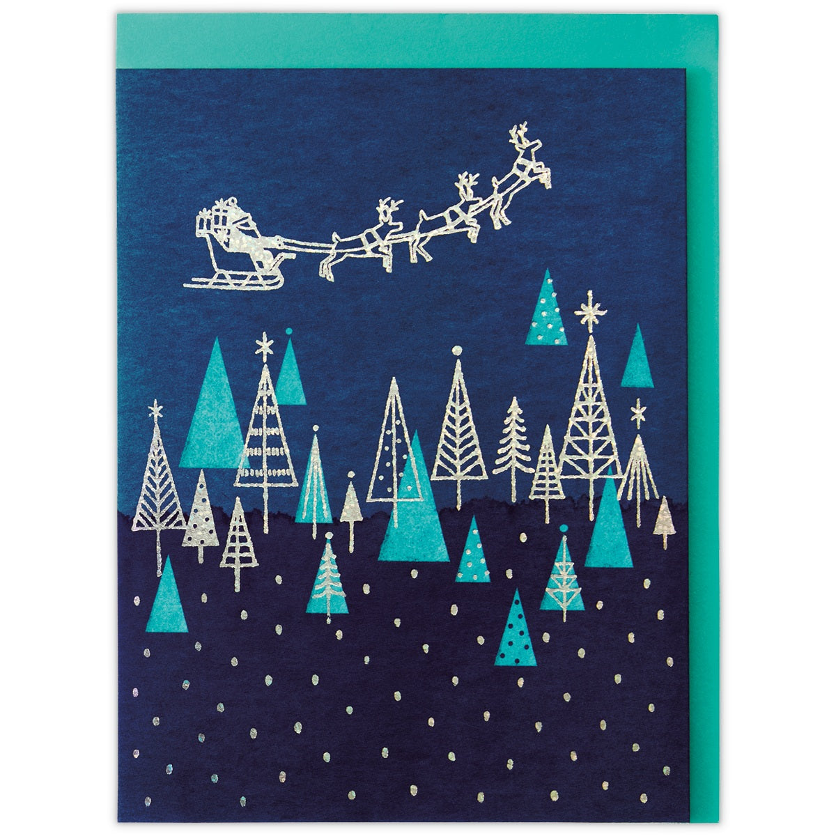 ホログラム箔 空を飛ぶサンタ【二つ折りクリスマスカード】