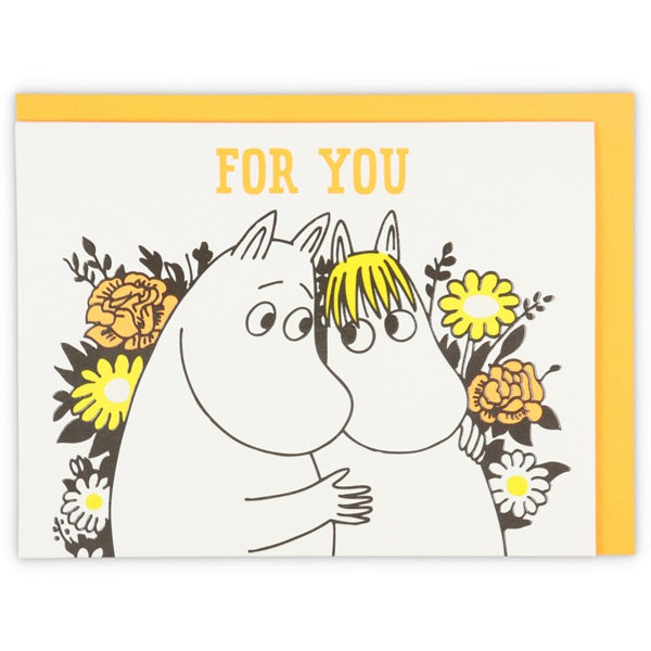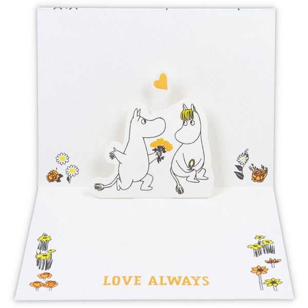 中面には「LOVE ALWAYS」。スノークのおじょうさんにムーミンがお花を手渡す、かわいいカードです。