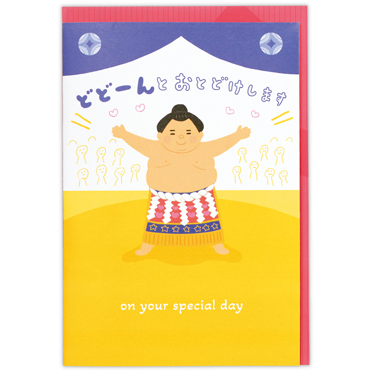 ●カード:195×135mm●封筒:205×140mm●定形外●♪ボタンを押すと行司の掛け声やおすもうさんの声などが流れます