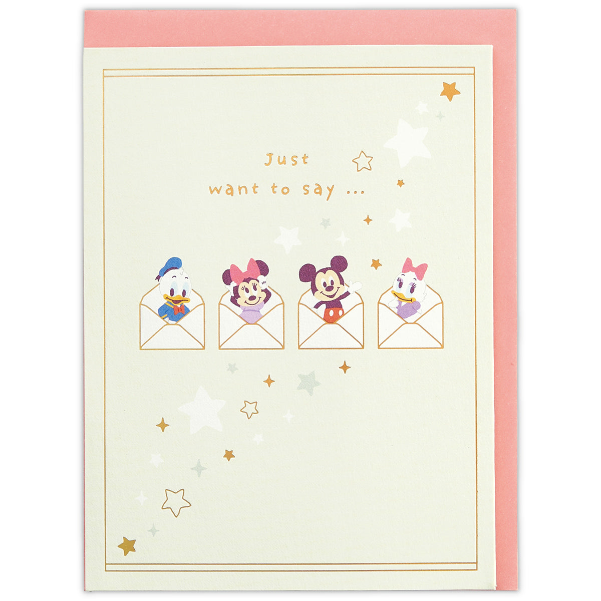 小さなミッキー&フレンズが封筒からひょっこり顔を出す可愛らしいサンキューカードです。お手紙と一緒に感謝の気持ちを届けてくれます◎