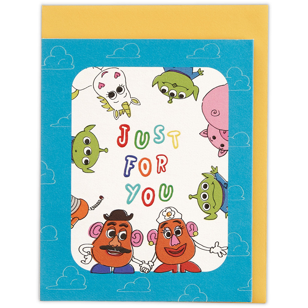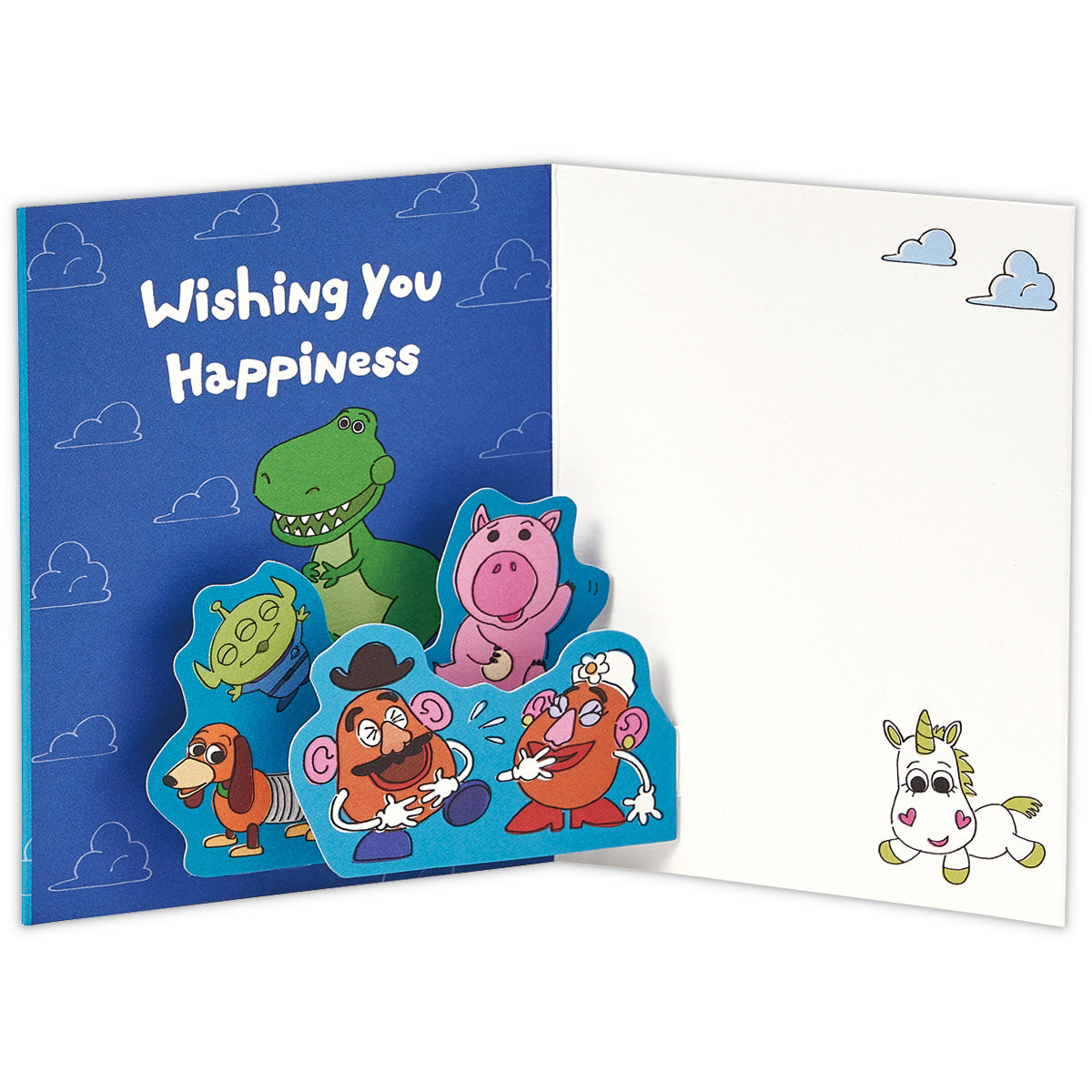 ちょっとしたメッセージを書いたりギフトに添えたりしやすい立体ミニカード。エイリアンやミスター・ポテトヘッドなど、トイ・ストーリーの人気キャラクターたちが集合した明るくにぎやかなデザイン。