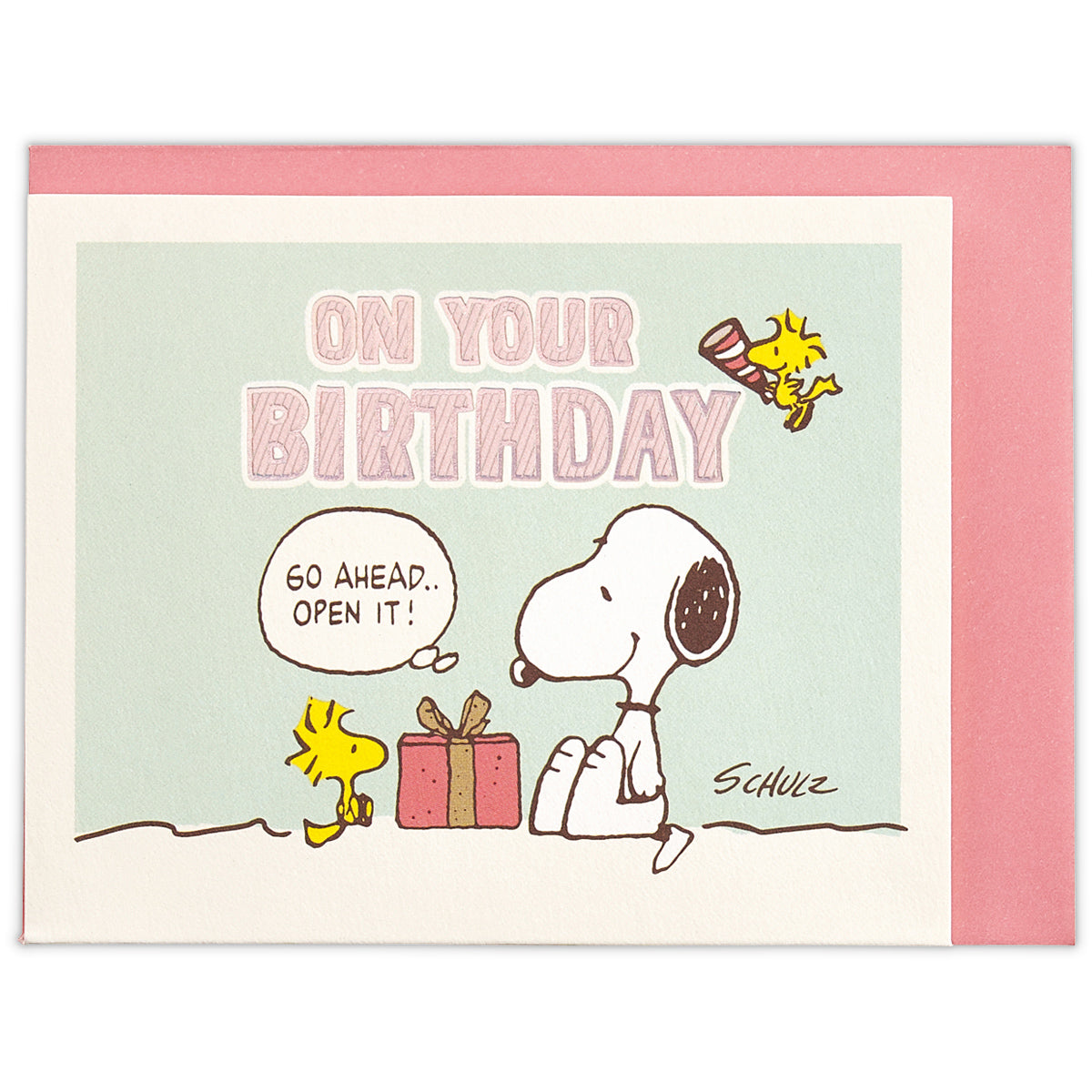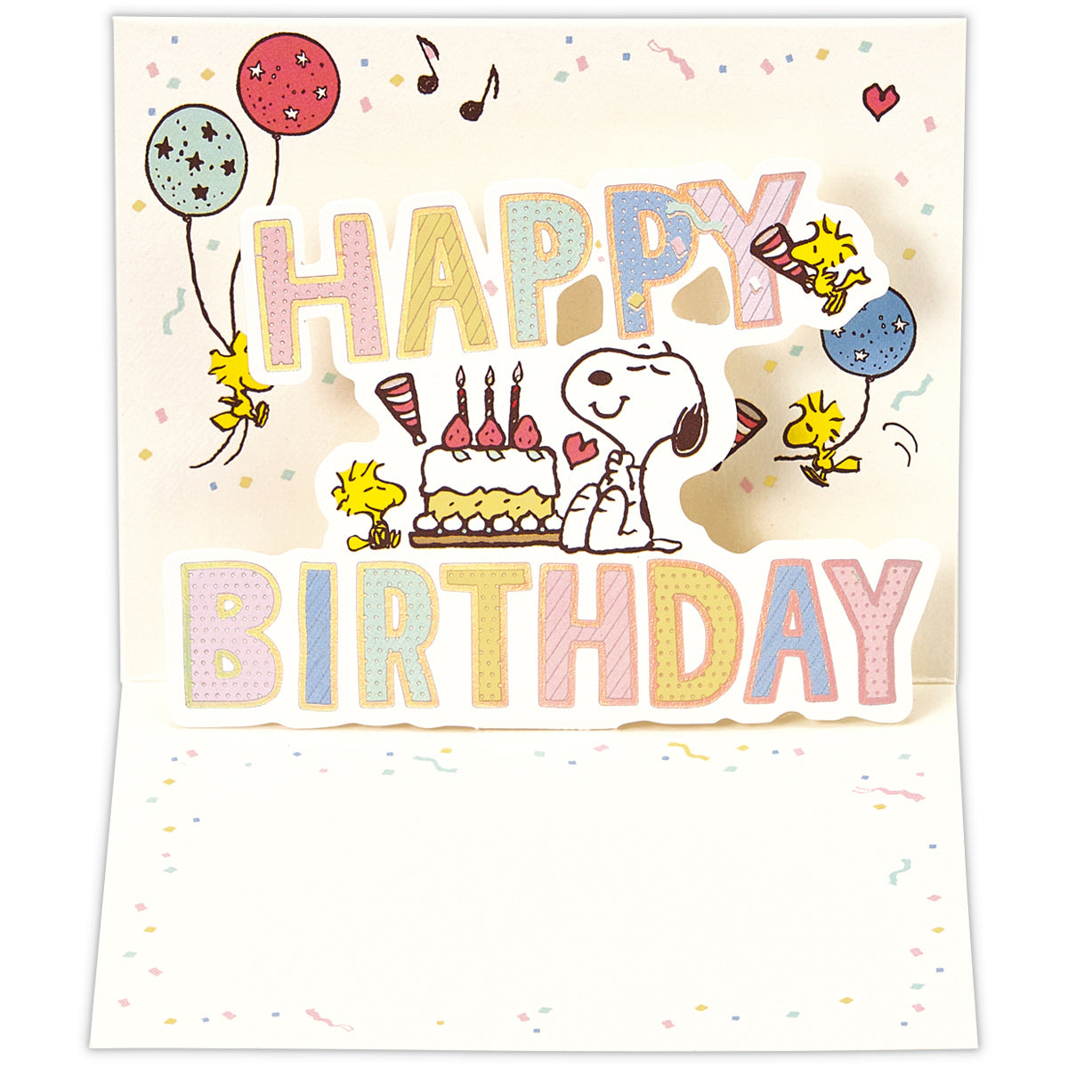 ちょっとしたメッセージを書いたりギフトに添えたりしやすい立体ミニカード。誕生日をささやかにお祝いするスヌーピーとウッドストックが可愛いデザインです。