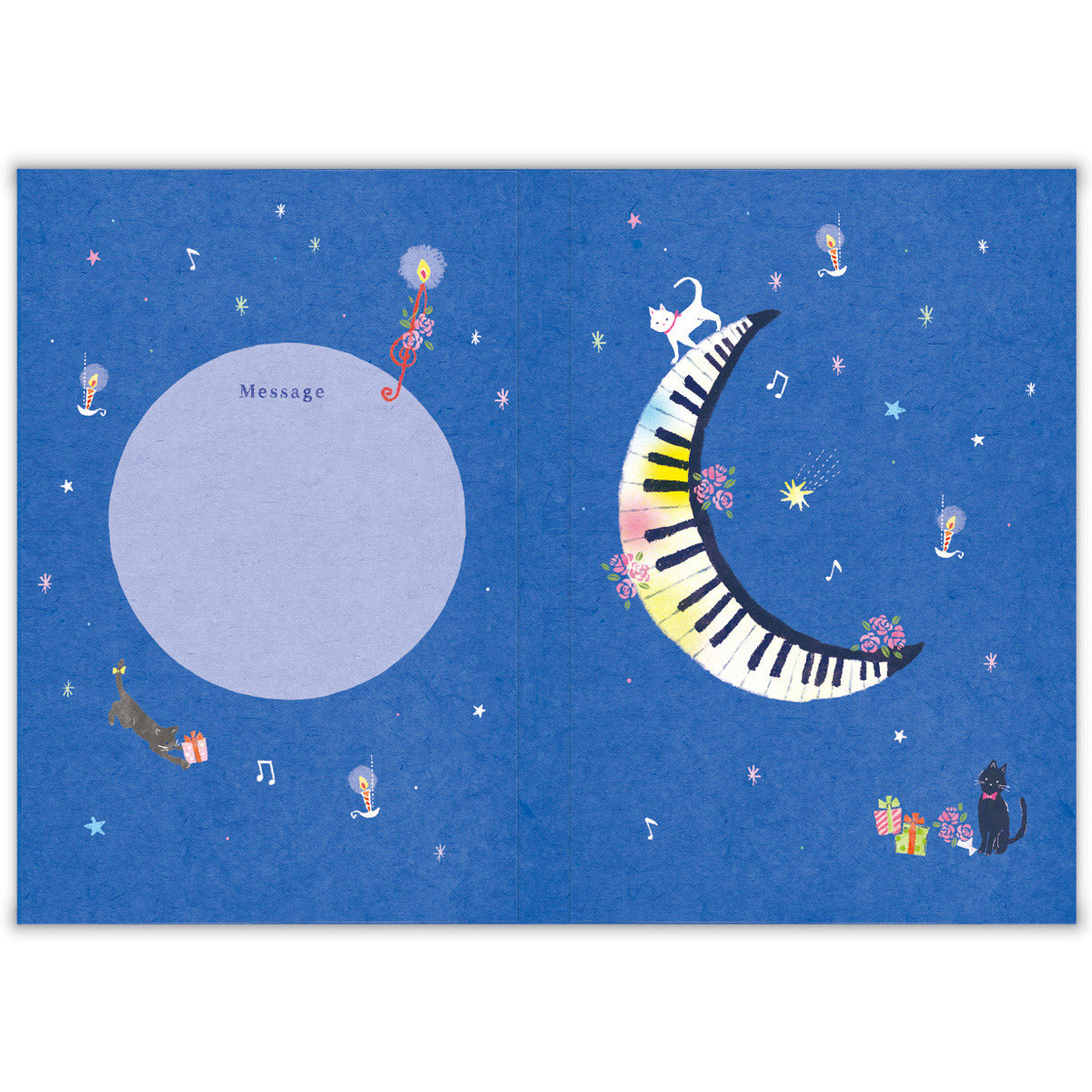 猫とピアノ、月を組み合わせた大人っぽい雰囲気のオルゴールカード