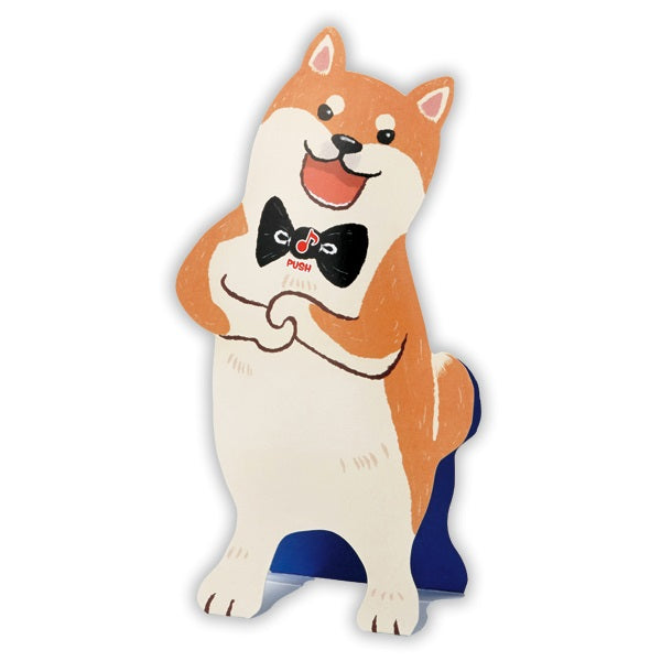 ボタンを押すと柴犬がオペラ風にバースデーソングを熱唱!かわいい動物が自慢の歌声で誕生日をお祝いしてくれるオルゴールカードです