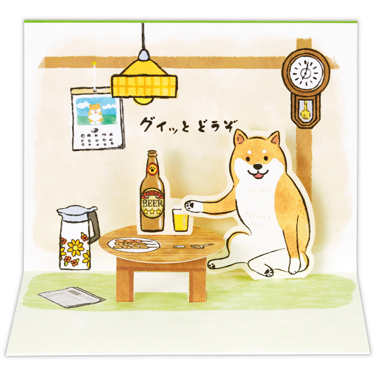 人気の柴おとんが立体カードに!柴おとんの「一杯どうぞ」が優しいサンキューカード