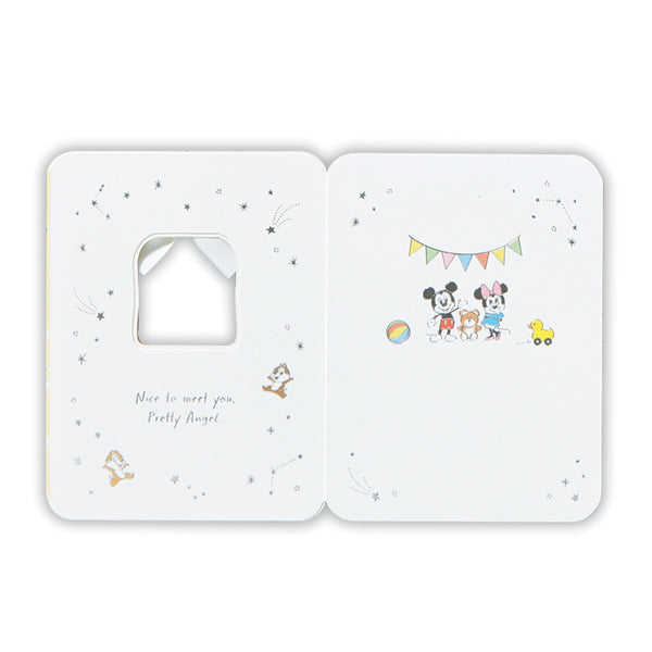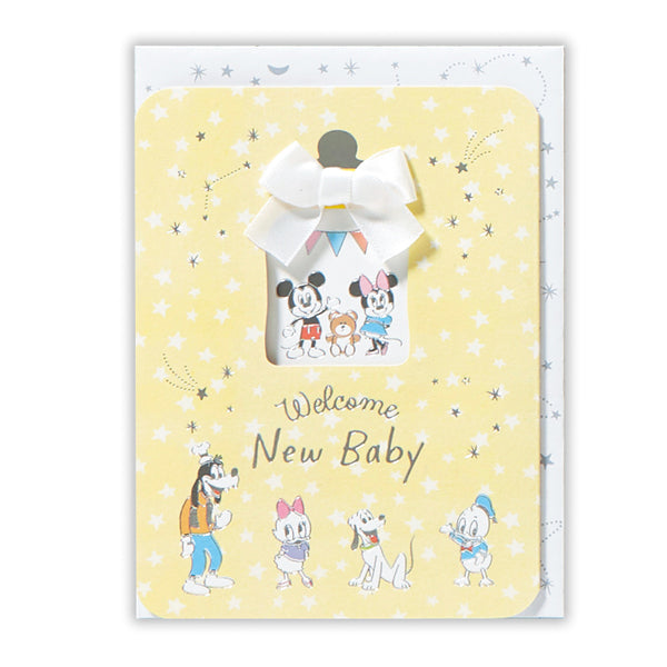 ・大人っぽい銀箔線で描かれたミッキーや仲間たちが赤ちゃんの誕生をお祝いしているキュートなデザイン