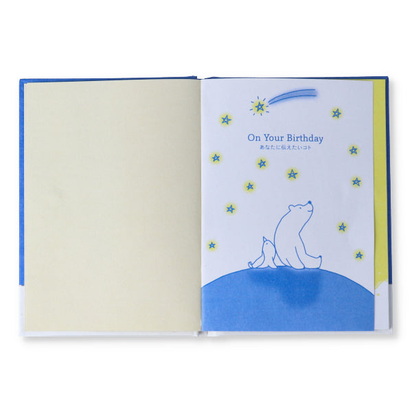 ・相手への想いを書き込め、世界に一つの絵本として贈ることができます。絵本カードの表紙には「On Your Birthday あなたに伝えたいコト」のタイトル。
