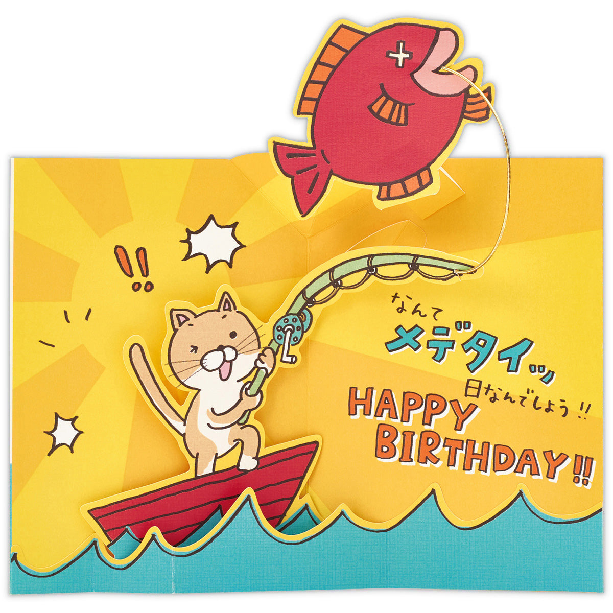ねこメデタイII【誕生お祝い/立体カード/おしゃべりなオトモダチ】