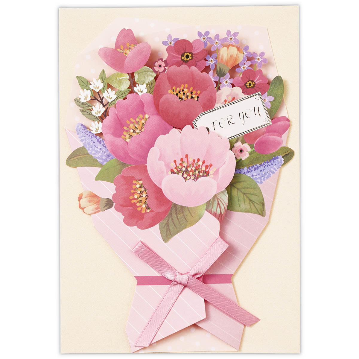 お花を贈るように使えるブーケ型の多目的カードです。ブーケのデザインなので、記念日のイベントなどに大切な人にお贈りするのもおすすめです。