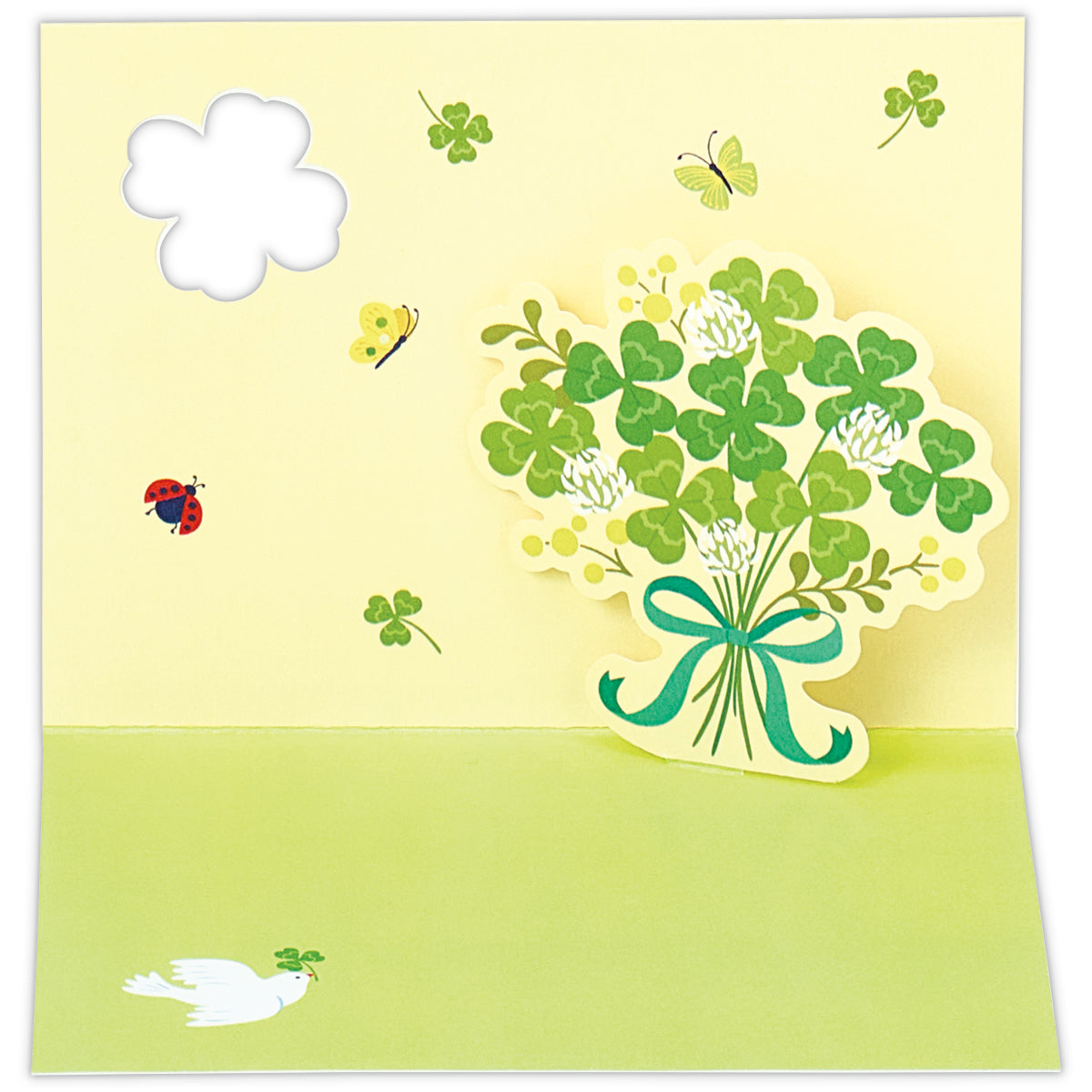 鳥とクローバー【ありがとう/立体カード/ハッピーホール】