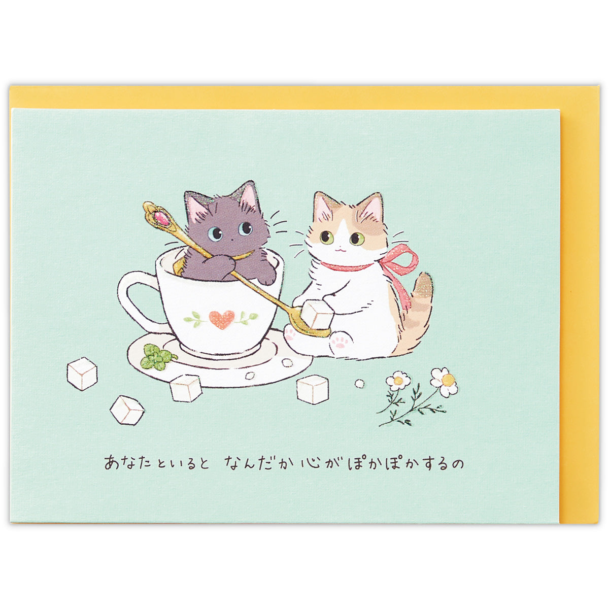 猫の作品で人気のイラストレーター・たたメーピーが手がけるカードシリーズが新登場! いつも頑張るあなたに、ミント色の瞳がチャームポイントの三毛猫・Mint(ミント)が優しい言葉をかけてくれます。