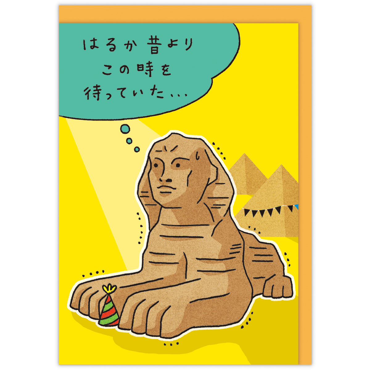 あの銅像が動く!? 何千年もの間砂漠に鎮座していたスフィンクスが、誕生日をお祝いするべく軽快に動き出すインパクト大のバースデーカードです。