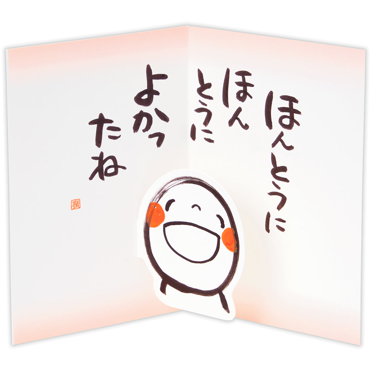 手元にあると楽しくなる笑い文字シリーズ。満面笑顔の筆文字「笑い文字」で温かい気持ちを届けられるグリーティングカードです。