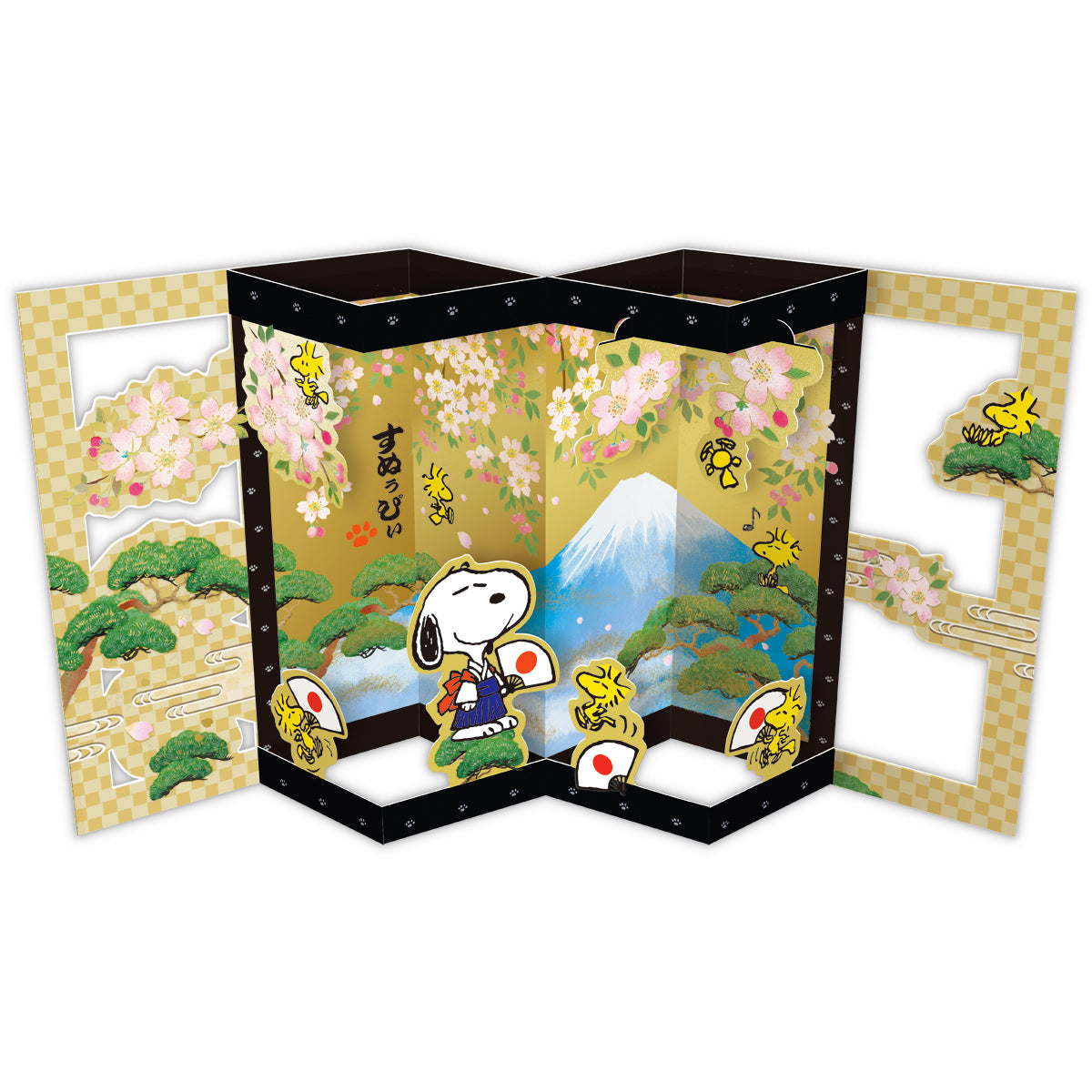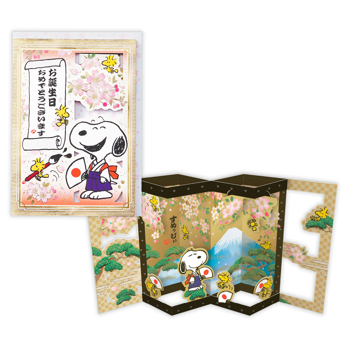 スヌーピー 金屏風ハローニッポン【誕生お祝い/立体カード】
