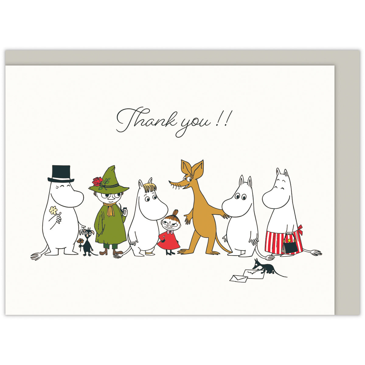 ムーミンのキャラクターたちが横並びで「ありがとう」を伝えてくれるサンキューカード。シンプルで分かりやすいデザインなので、ストレートに感謝の気持ちを伝えることができます。