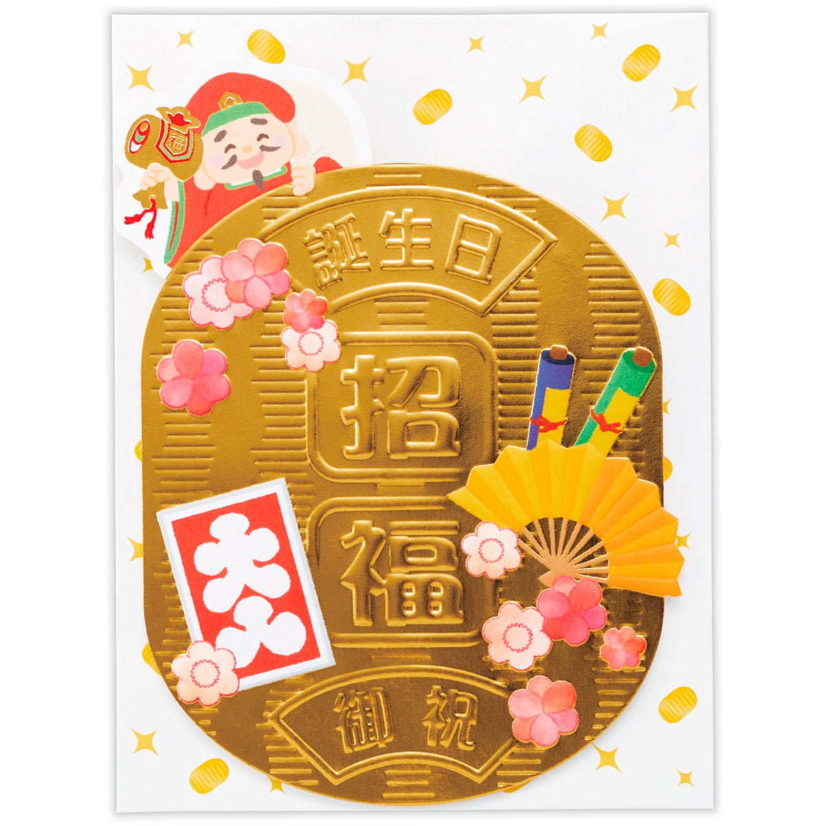バネ 金ぴか小判【誕生お祝い/二つ折りカード】