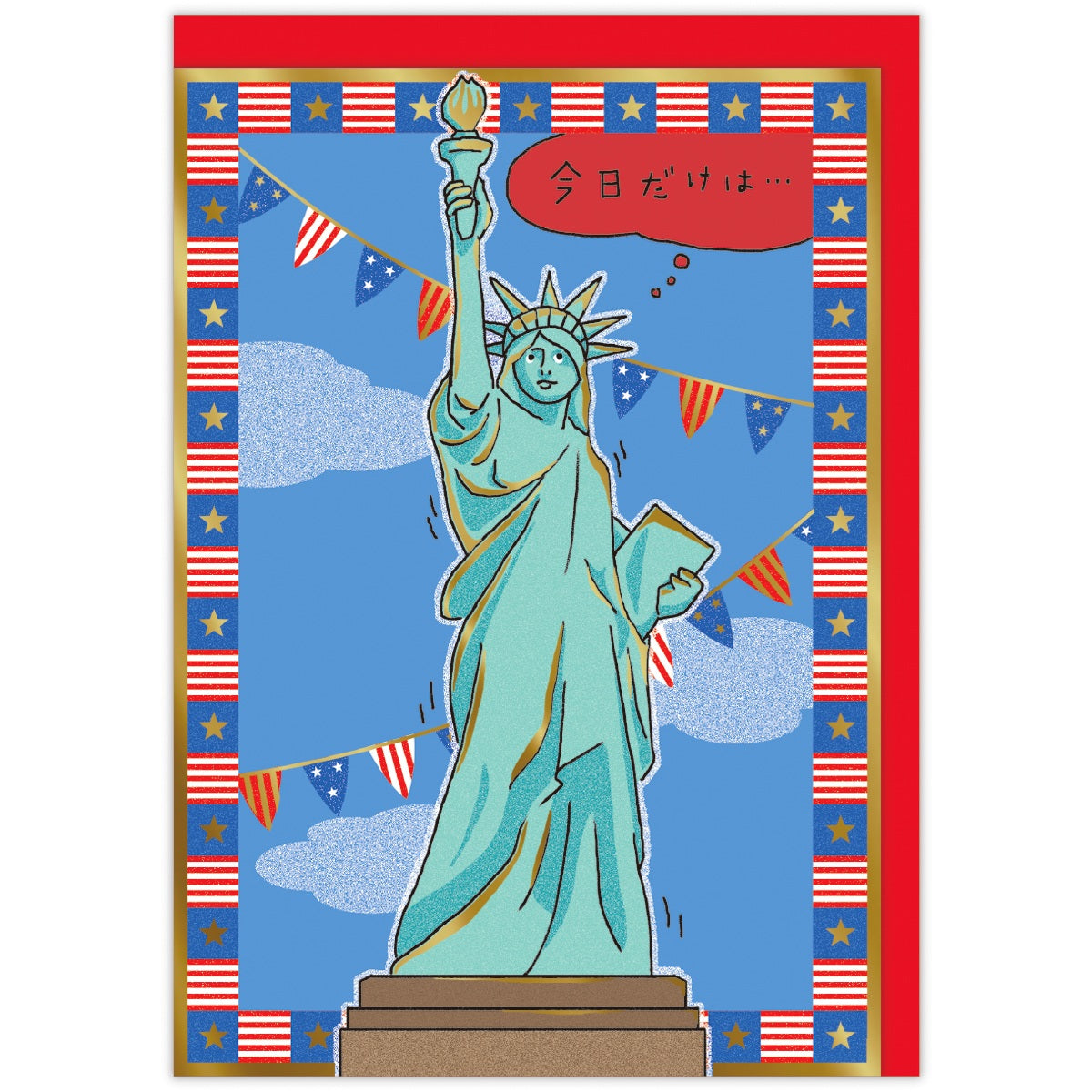 ユーモア動像 青空と自由の女神【誕生お祝い/立体カード】