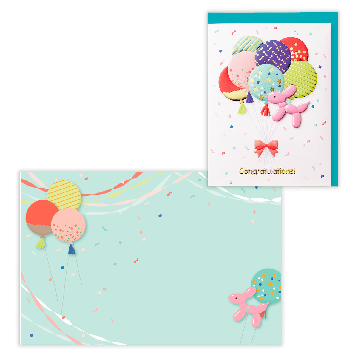 バルーンアート・ドッグをモチーフにした、トレンド感あふれるお祝いカード。表紙に3Dエンボス加工を施し、本物のバルーンのようなぷっくり感を表現しました。お祝いの気持ちを明るく楽しく伝えられます。