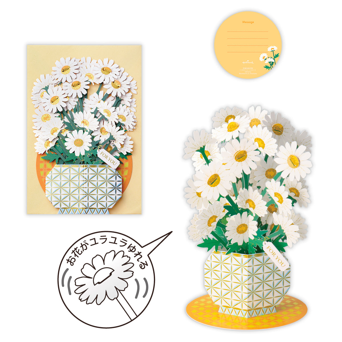 「あなたのそばにいつもお花を」というコンセプトでデザインされた「With Flowers(ウィズ フラワーズ)」シリーズ。花瓶に飾った本物の花のように、立体感あるブーケが楽しめます。お花と茎が別パーツになっている部分があり、触れると花びらが揺れるような動きをするのがポイント。お花のイメージに合わせた花瓶のデザインにもご注目ください。