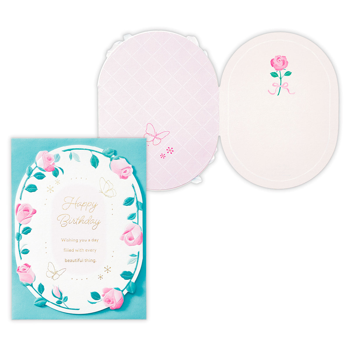 ダイカット ローズフレーム【誕生お祝い/二つ折りカード】