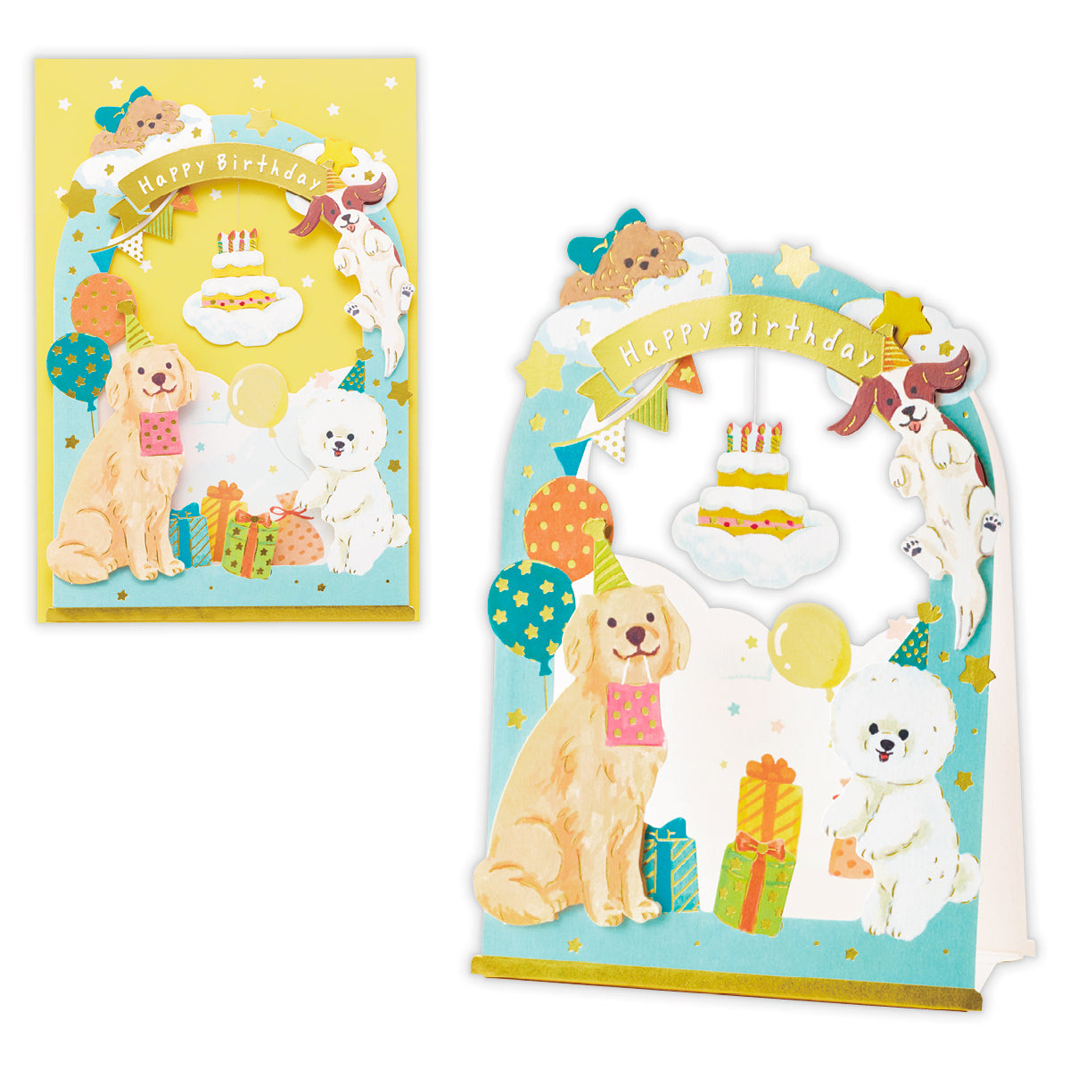 ゲートのような形にゆらゆら揺れるモチーフがポイントの、ちょっと珍しい立体カードが新登場。手描きのやわらかいタッチで描かれた動物たちが特別なひとときを彩ります。可愛すぎないタッチなので大人同士のやりとりにも◎