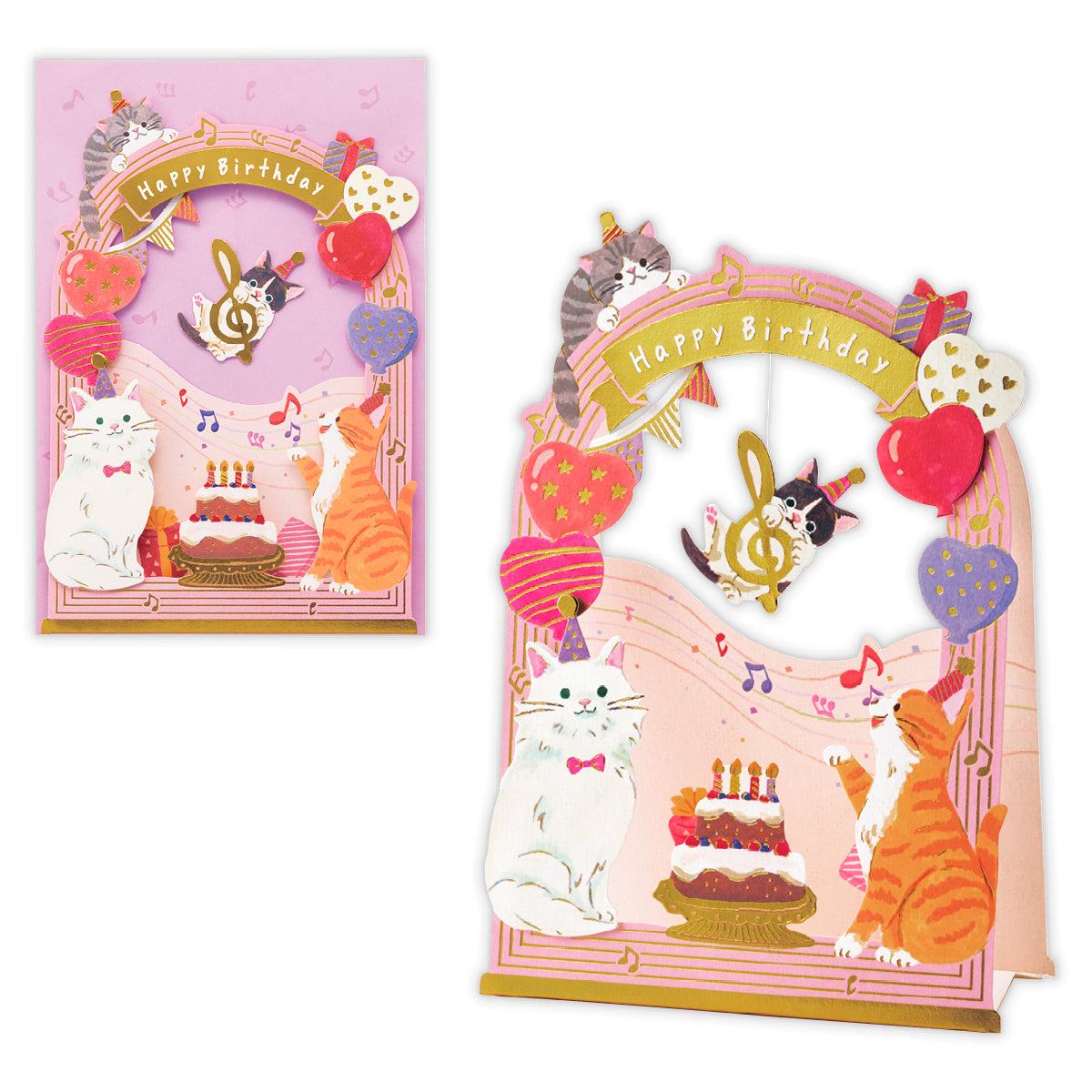 ゲートのような形にゆらゆら揺れるモチーフがポイントの、ちょっと珍しい立体カードが新登場。手描きのやわらかいタッチで描かれた動物たちが特別なひとときを彩ります。可愛すぎないタッチなので大人同士のやりとりにも◎
