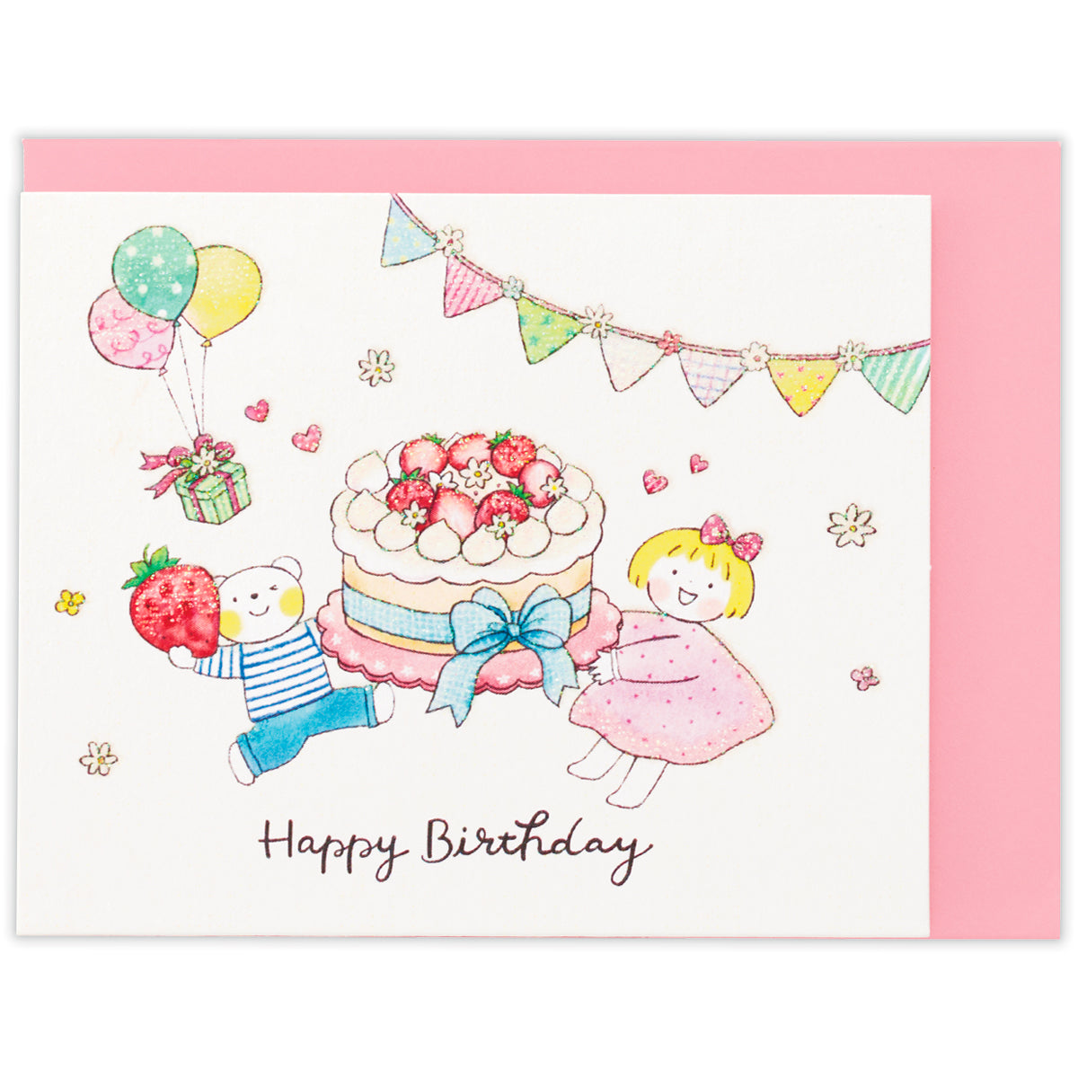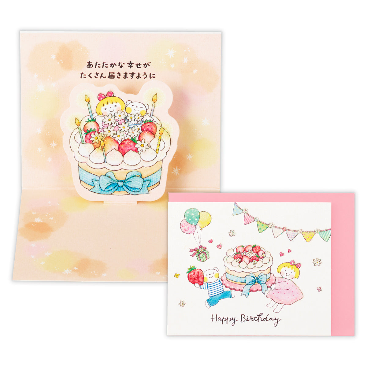 ミニカード 大きなケーキ【誕生お祝い/立体ミニカード/仲良しともだち】