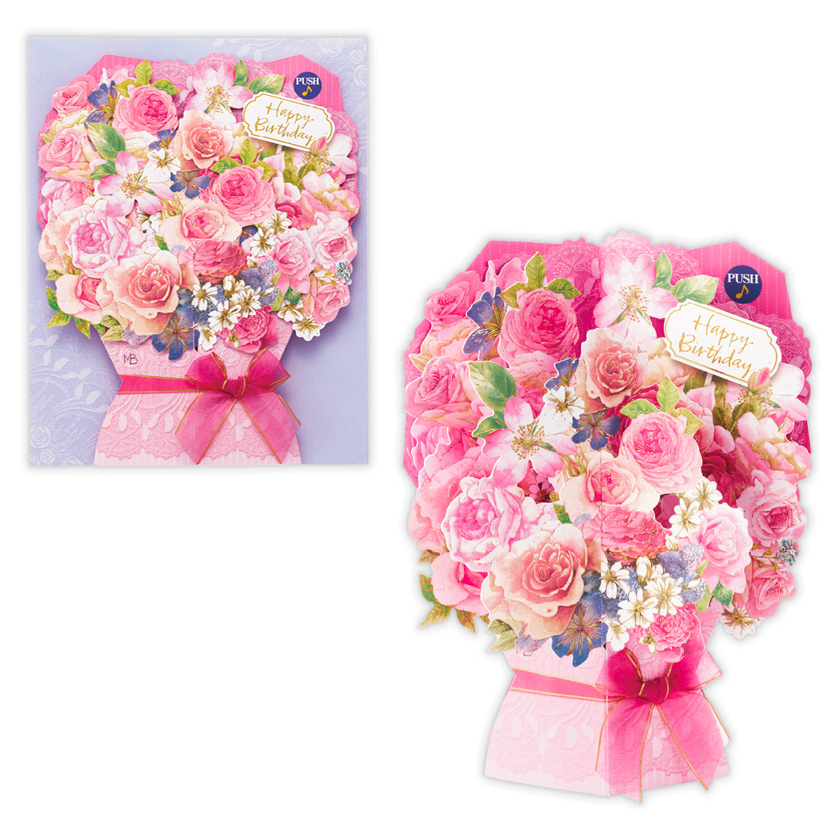 立てて飾れる 花束【誕生お祝い/立体オルゴールカード/マロリン・バスティン 】