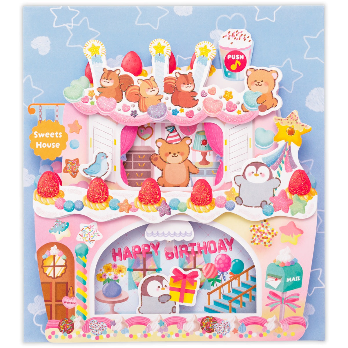 LEDスイーツハウス【誕生お祝い/オルゴールカード】