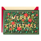 ポインセチアやひいらぎなど、緑と赤のクリスマスカラーが印象的なカードです。