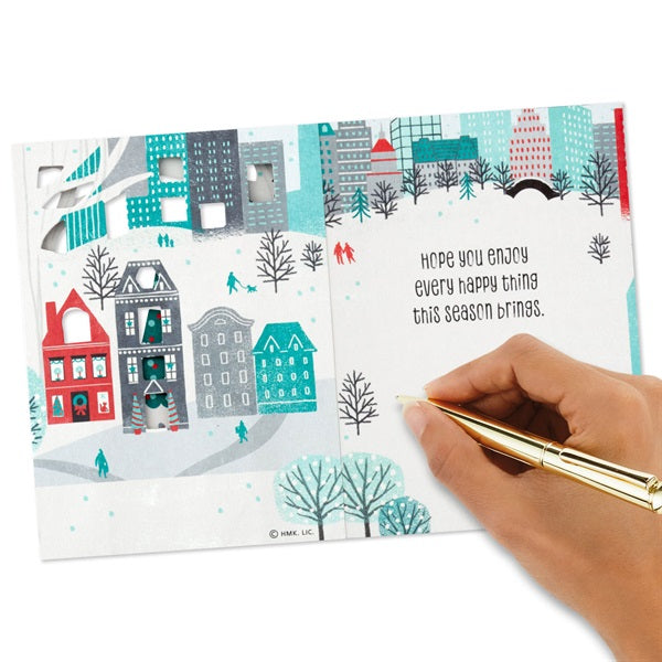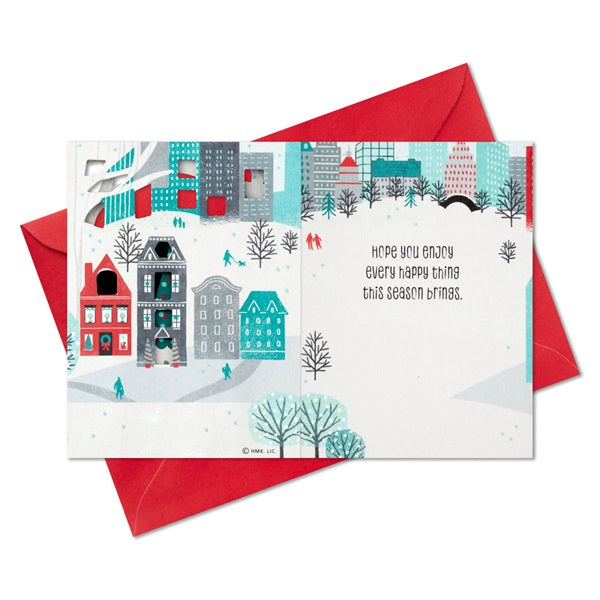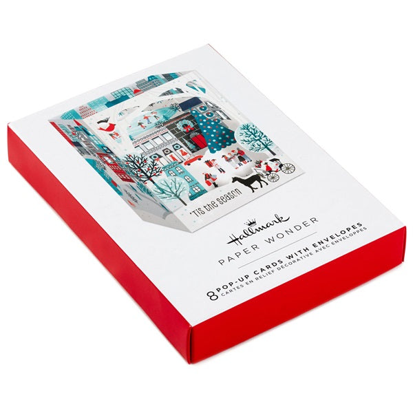 立てて飾れる Holiday City Scene 3D Pop-Up Boxed Christmas Cards 8【輸入クリスマス立体カードセット/Paper Wonder|8セット入り】