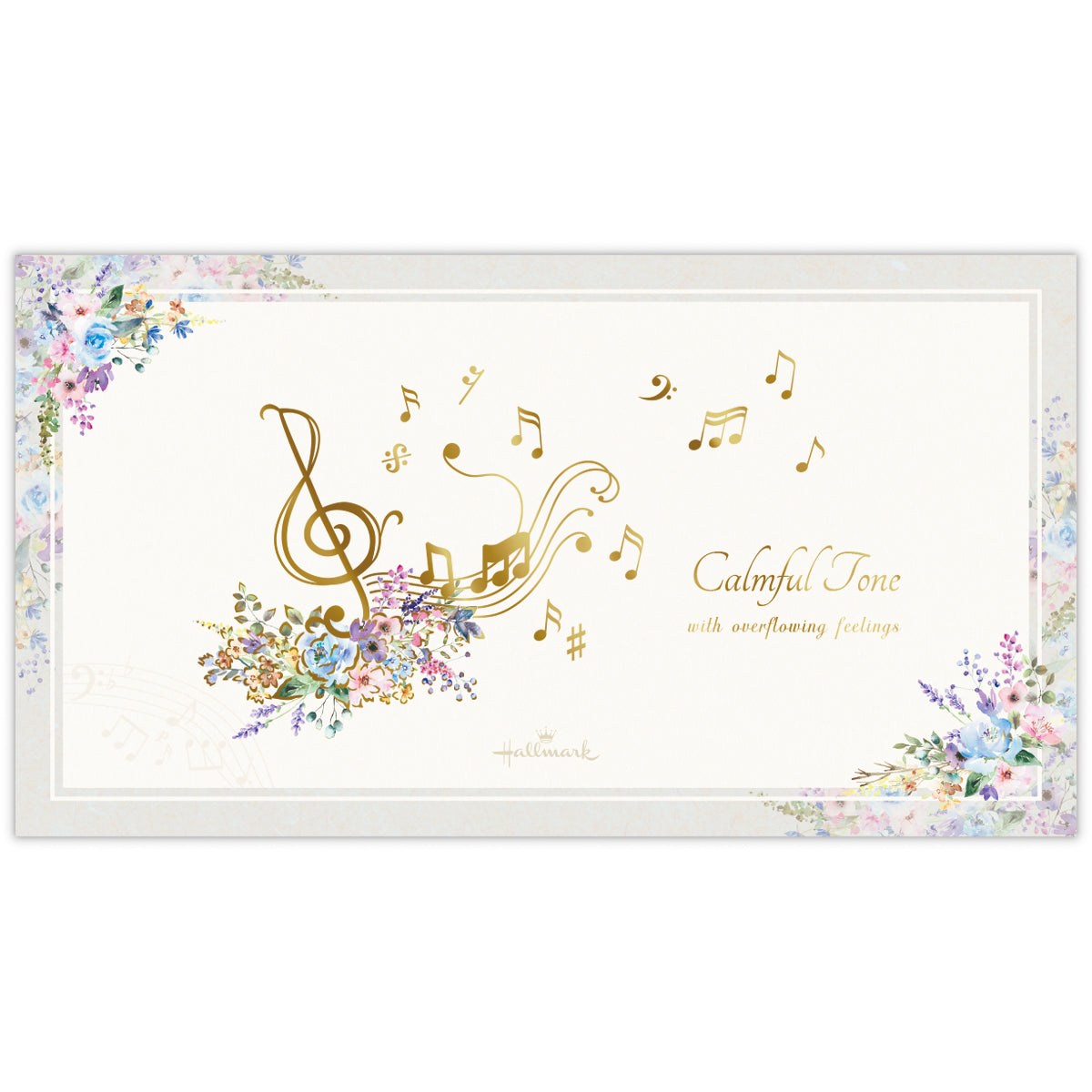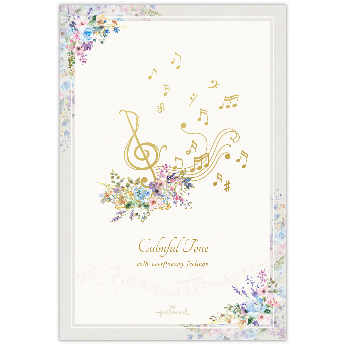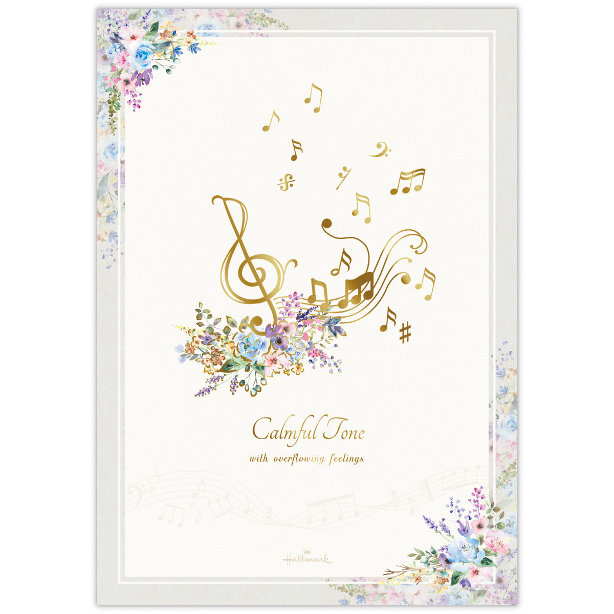 人気の花×音楽柄を、落ち着いたグレイッシュトーンで新鮮な見た目に。特定の楽器ではなく五線譜と音符のモチーフを描くことで、幅広い音楽好きの方に楽しんでいただけるようにしました。マットタイプの金箔加工がシックで繊細な印象を与えます。 -