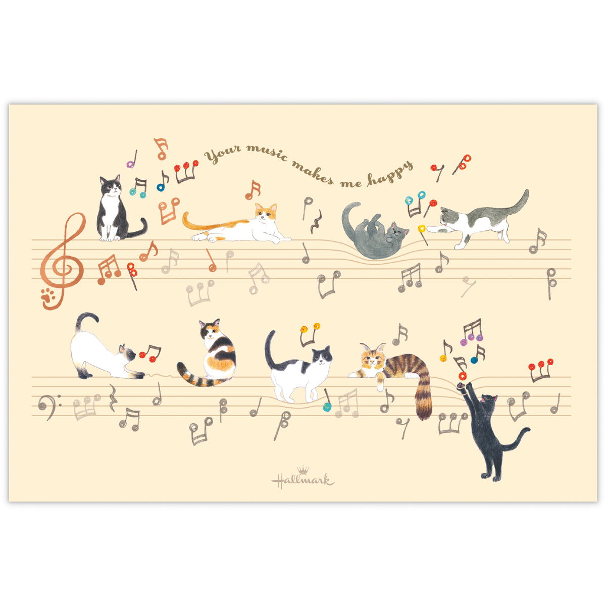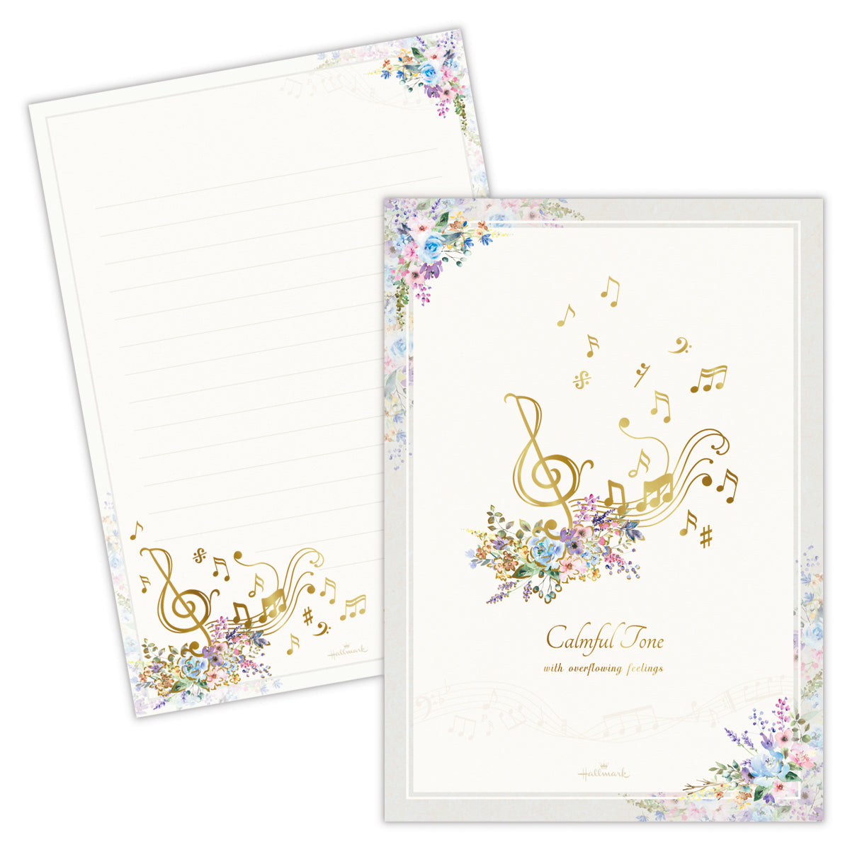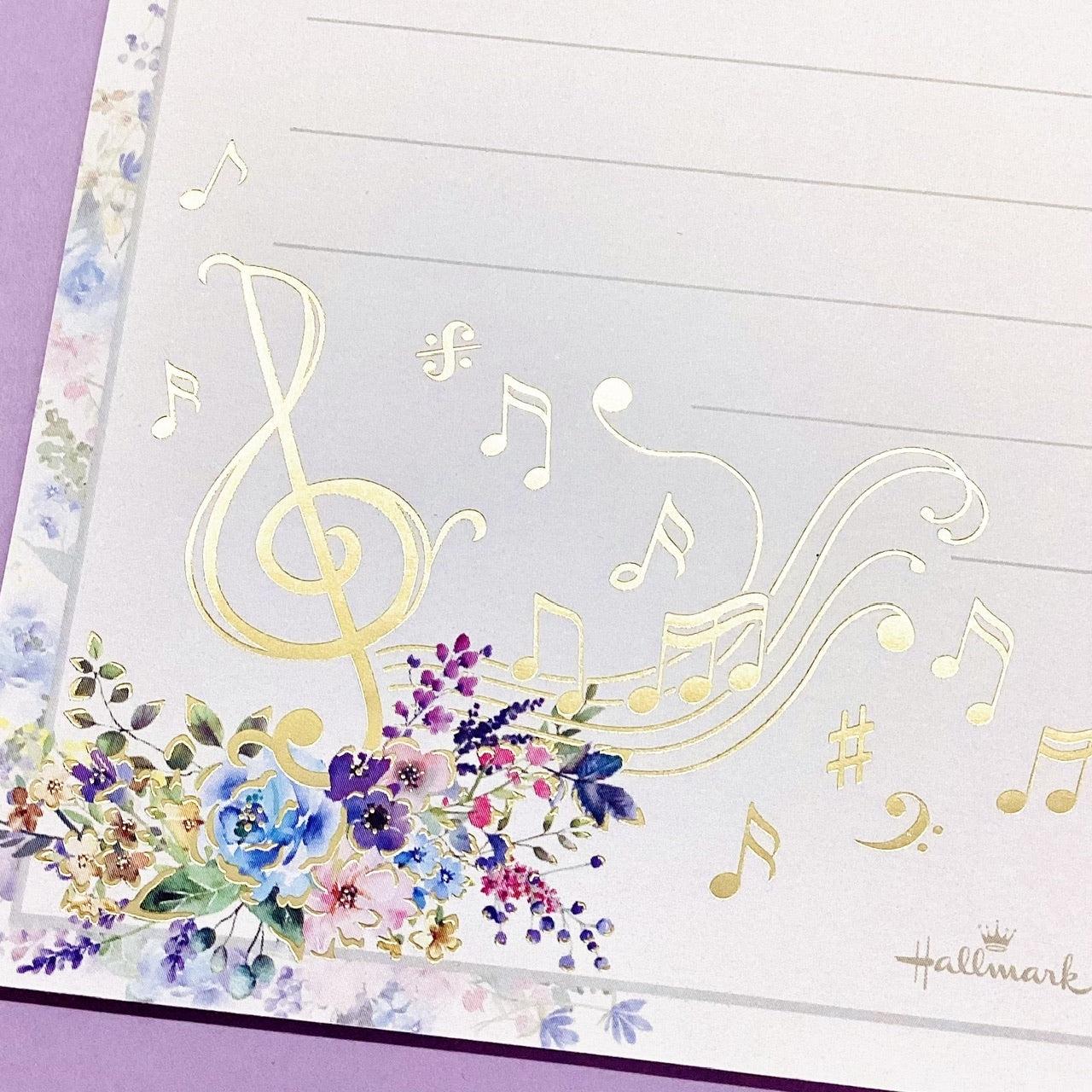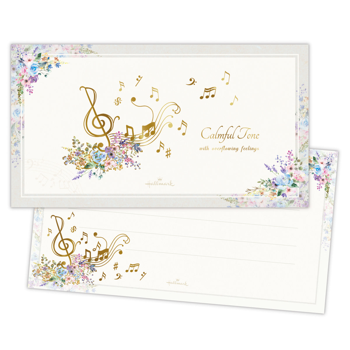人気の花×音楽柄を、落ち着いたグレイッシュトーンで新鮮な見た目に。特定の楽器ではなく五線譜と音符のモチーフを描くことで、幅広い音楽好きの方に楽しんでいただけるようにしました。マットタイプの金箔加工がシックで繊細な印象を与えます。 -