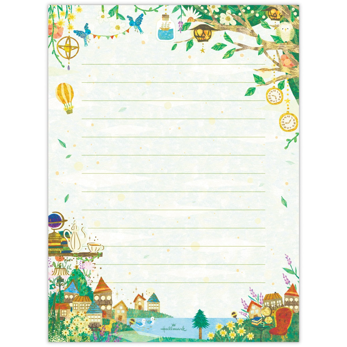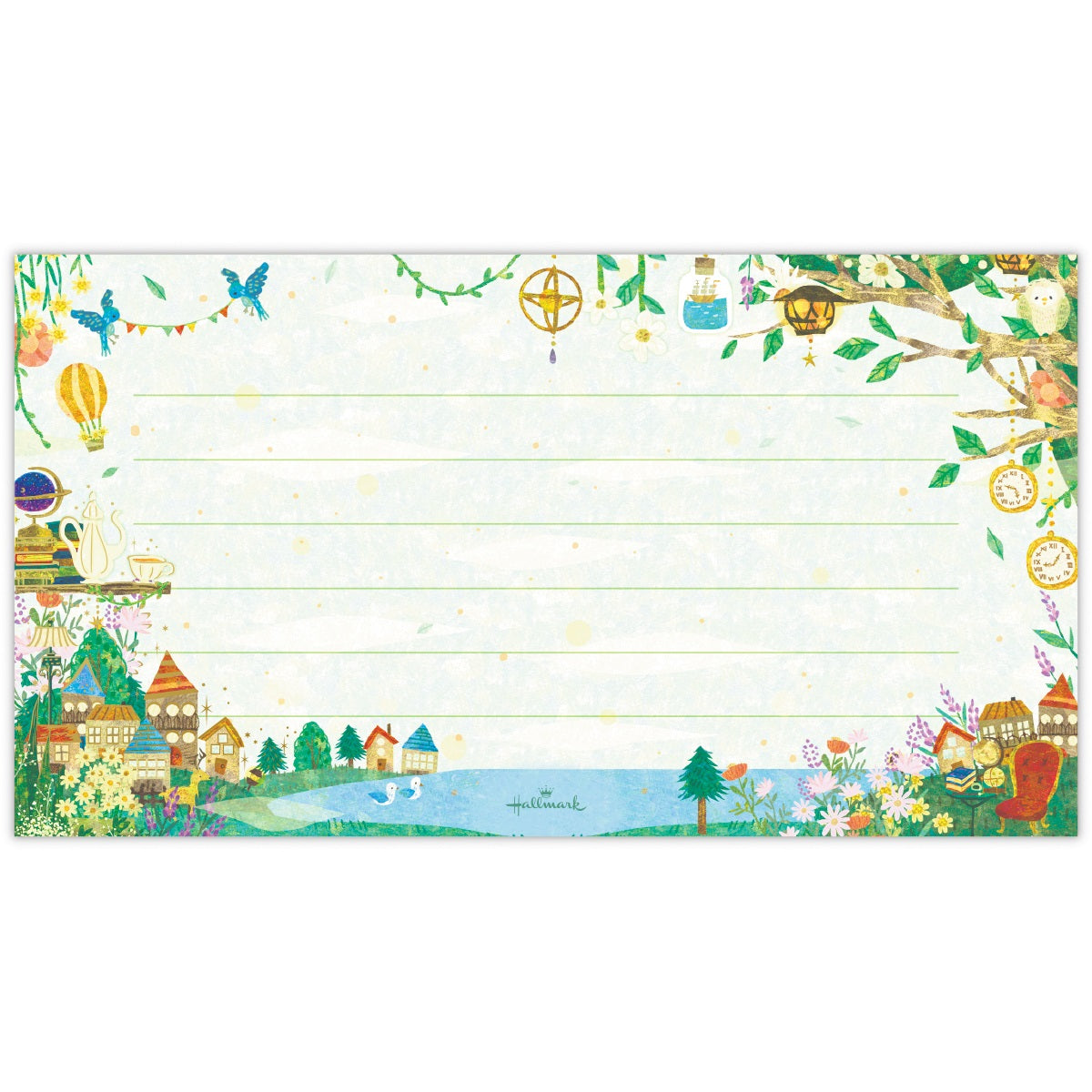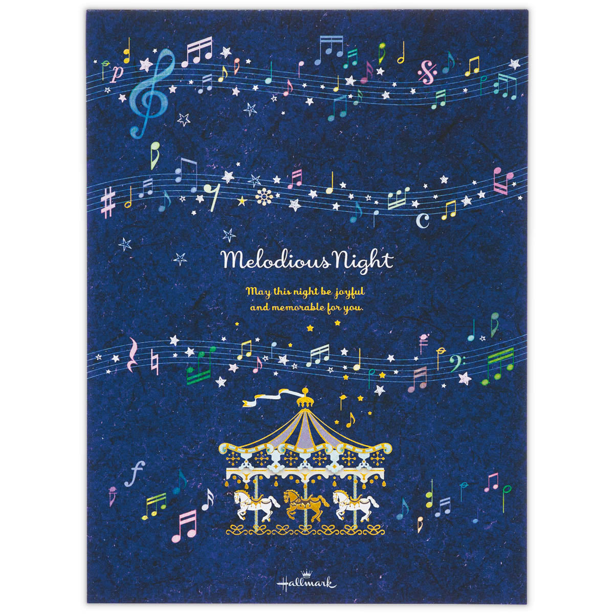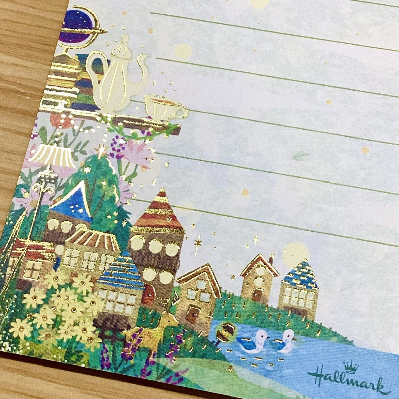 輝く三日月が星を降らせ、美しい夜空をつくり出す様子を描きました。ブルーの濃淡で表現された奥行きある空に、金箔加工の月や星が映える幻想的なデザイン。罫線なしタイプなので、お手紙だけでなくイラストなど幅広くお楽しみいただけます。 -