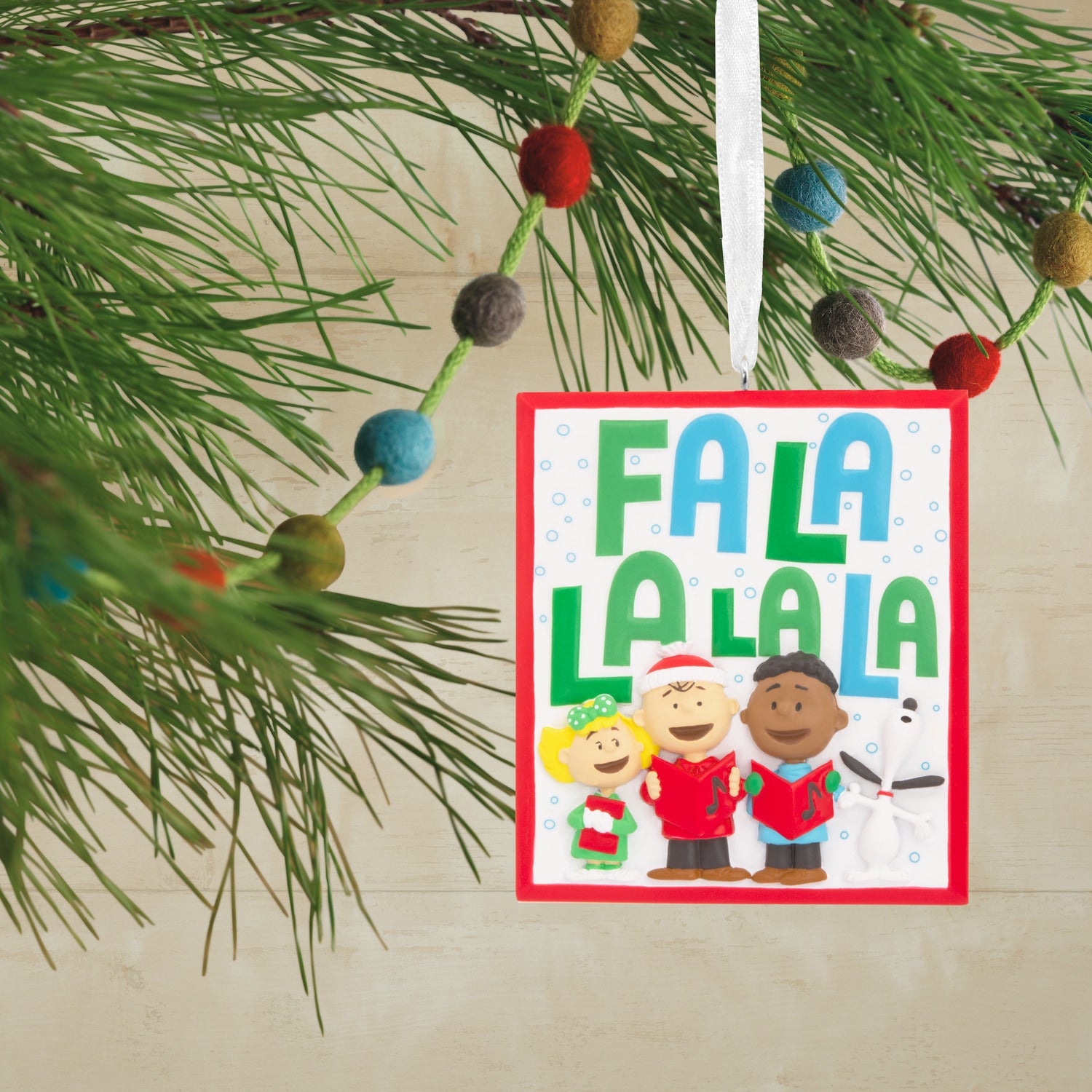 ピーナッツ・ホールマーク・クリスマスオーナメントで、あなたのホリデーに音楽のインスピレーションを加えましょう。サリー、チャーリー・ブラウン、フランクリン、スヌーピーが Fa La La La... と「Deck the Halls 」のキャロルを楽しんでいます。