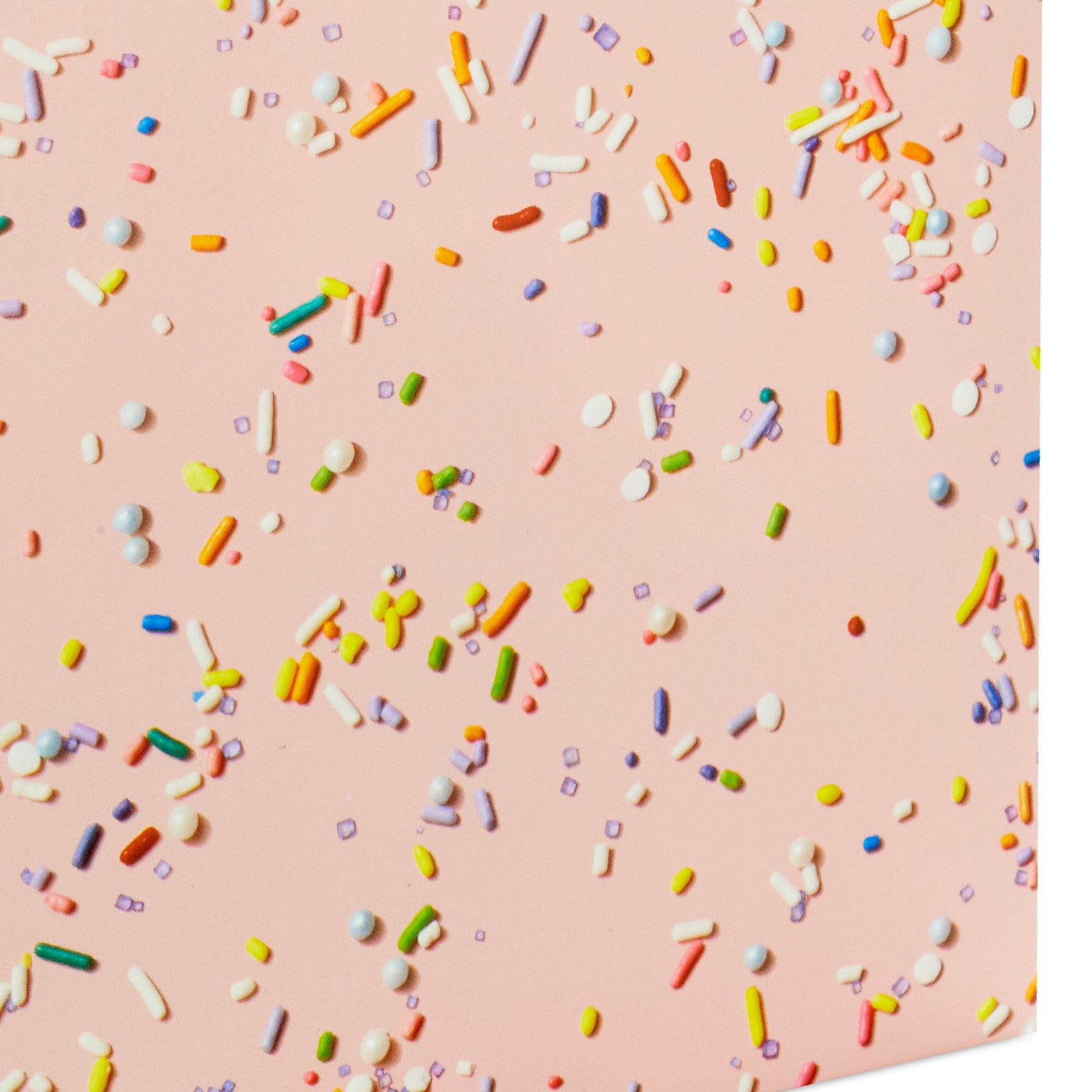 ピンク地にカラフルなスプリンクルが描かれたギフトバッグです。とっておきのお祝い事や、たくさんのギフトの中で個性を出したいときにぴったり!